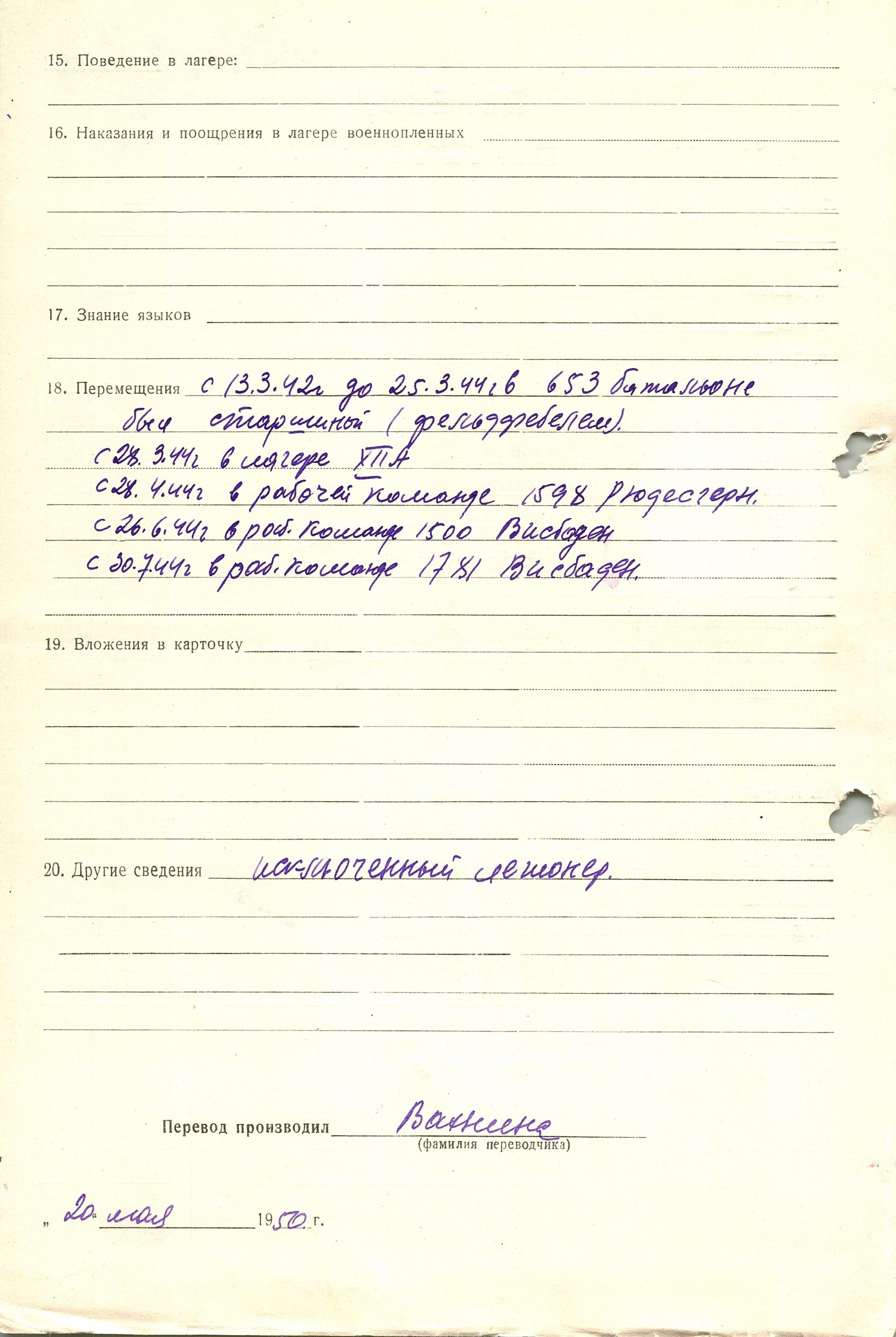 Военнопленные, трофейные карточки. Киевская обл.