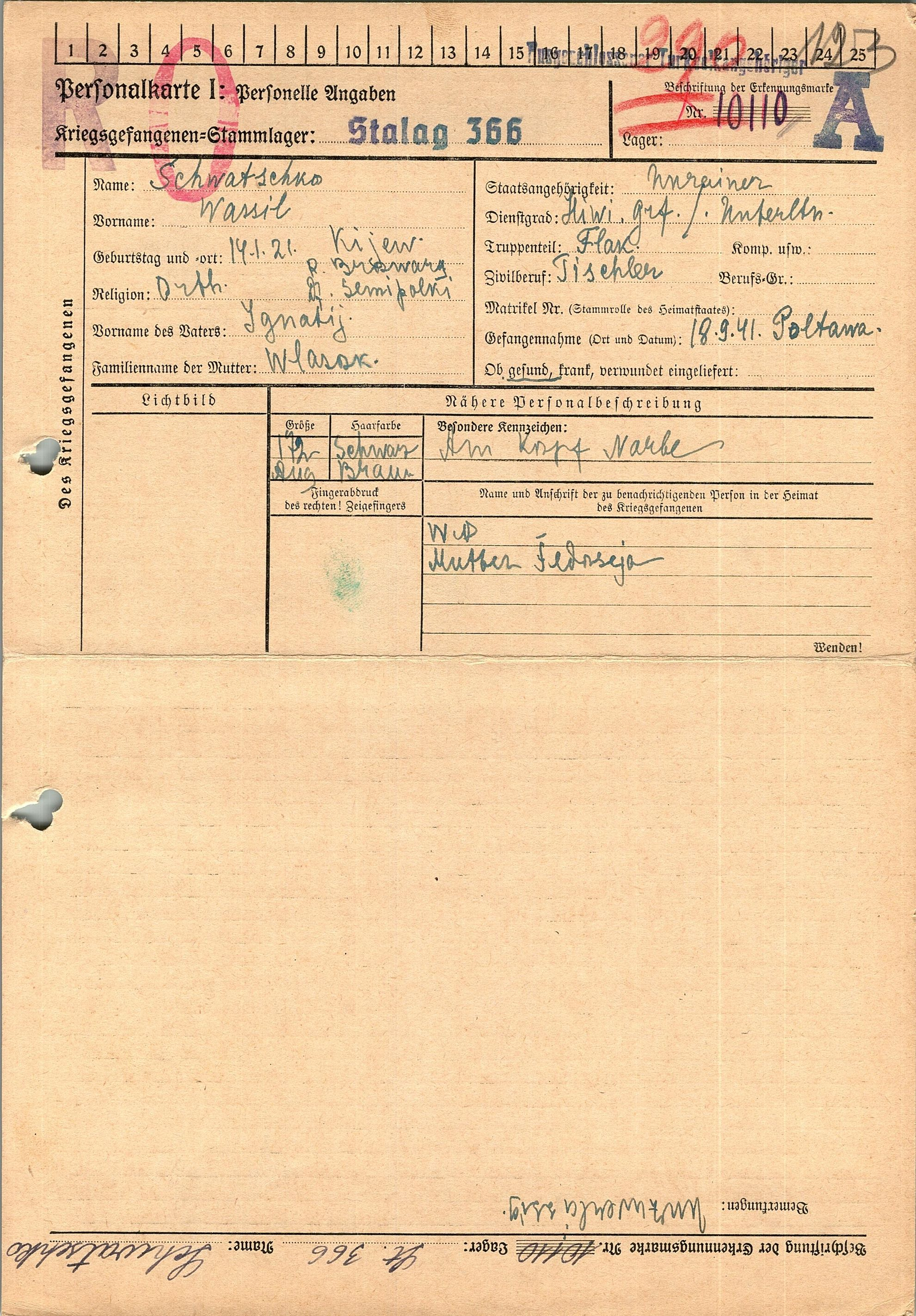 Военнопленные, трофейные карточки. Киевская обл.