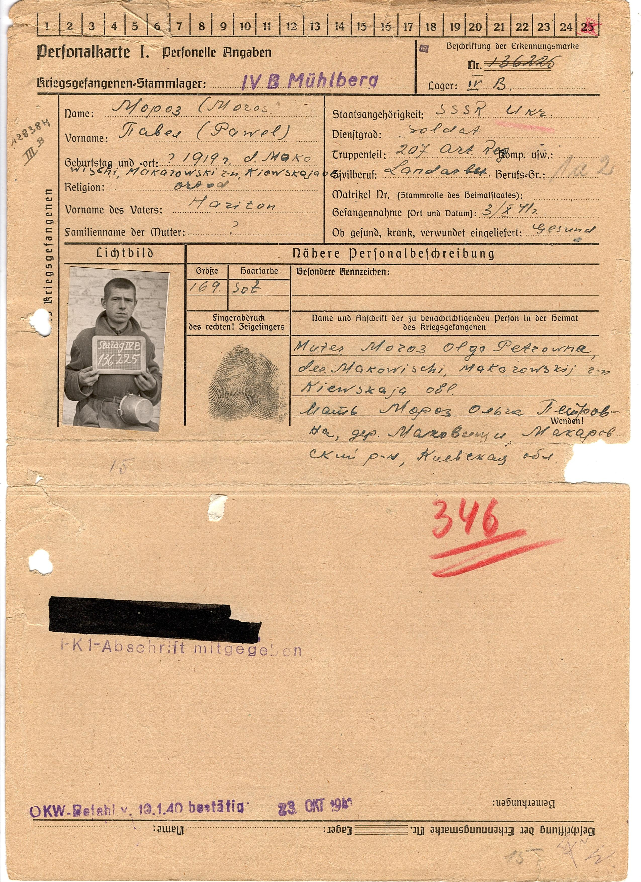 Военнопленные, трофейные карточки. Киевская обл.
