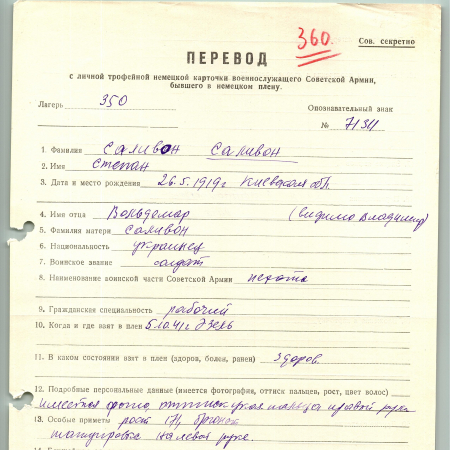 Саливон Степан Вольдемарович (Владимирович), 26.05.1919 г.р., Киевская обл. Рядовой, пехота. Попал в плен 08.10.1941 г., Эзель. С 03.09.1943 г. в заправочной авиабазе, 2/I. Рига, танковые казармы.