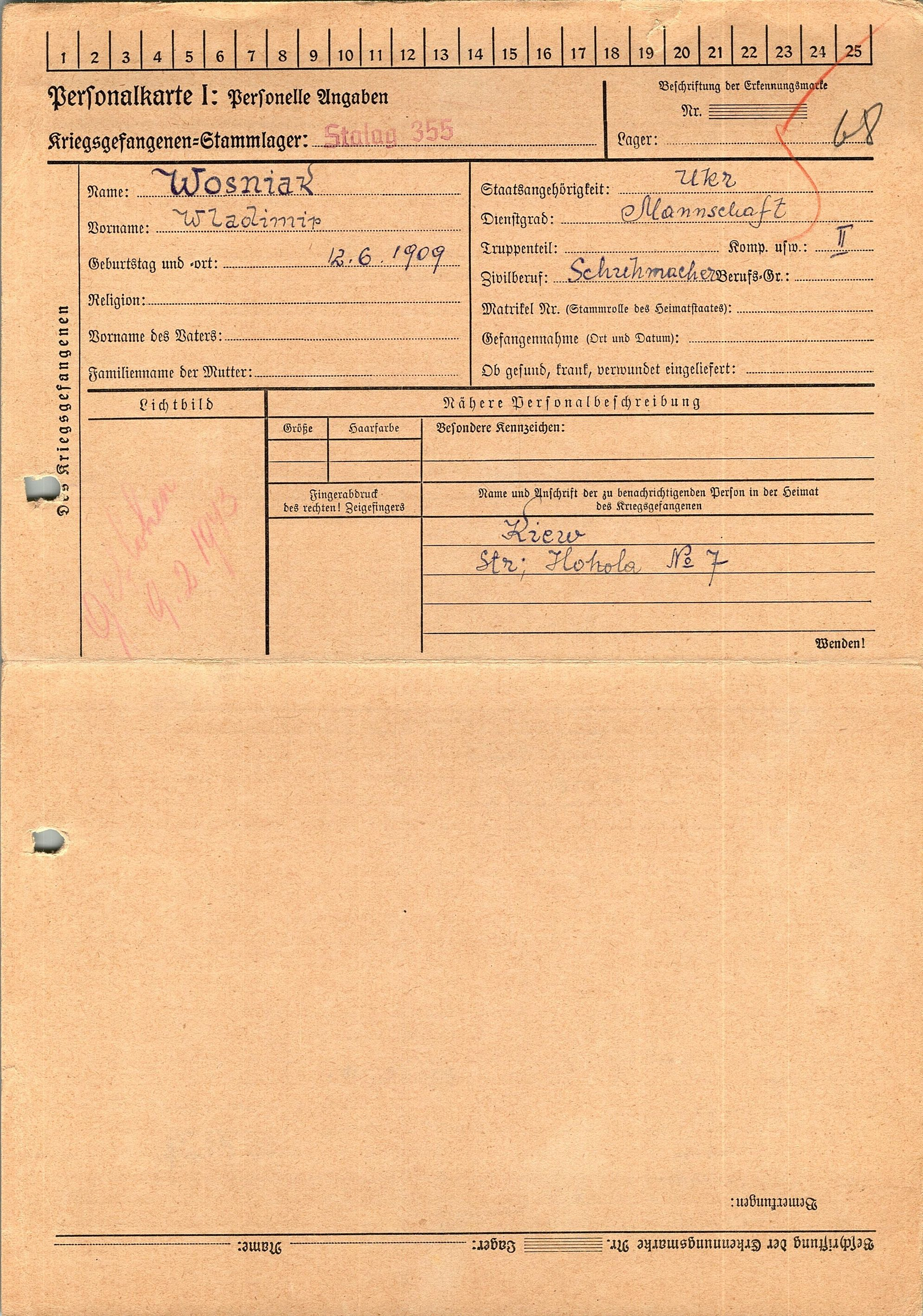 Военнопленные, трофейные карточки. Киевская обл.
