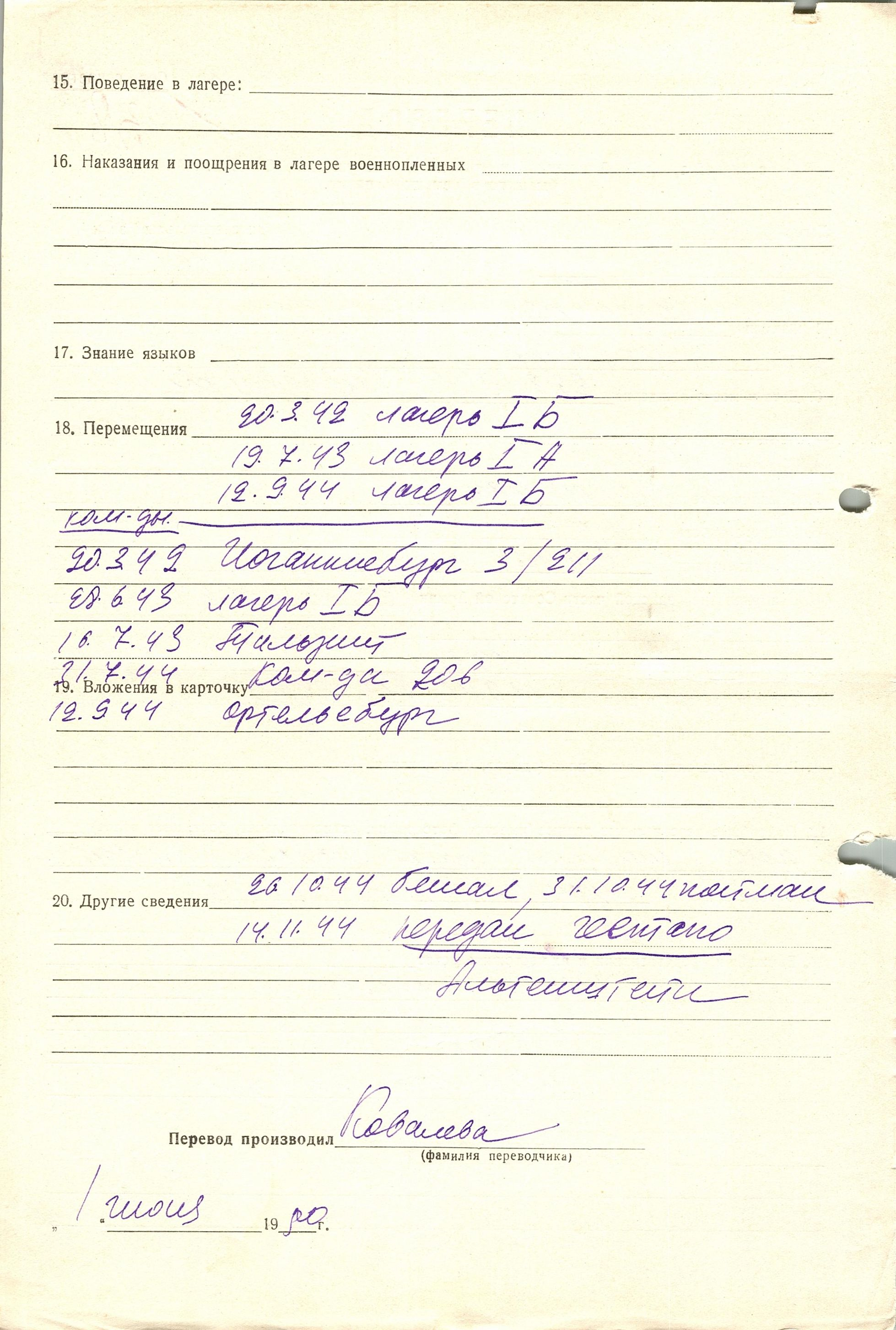 Военнопленные, трофейные карточки. Киевская обл.