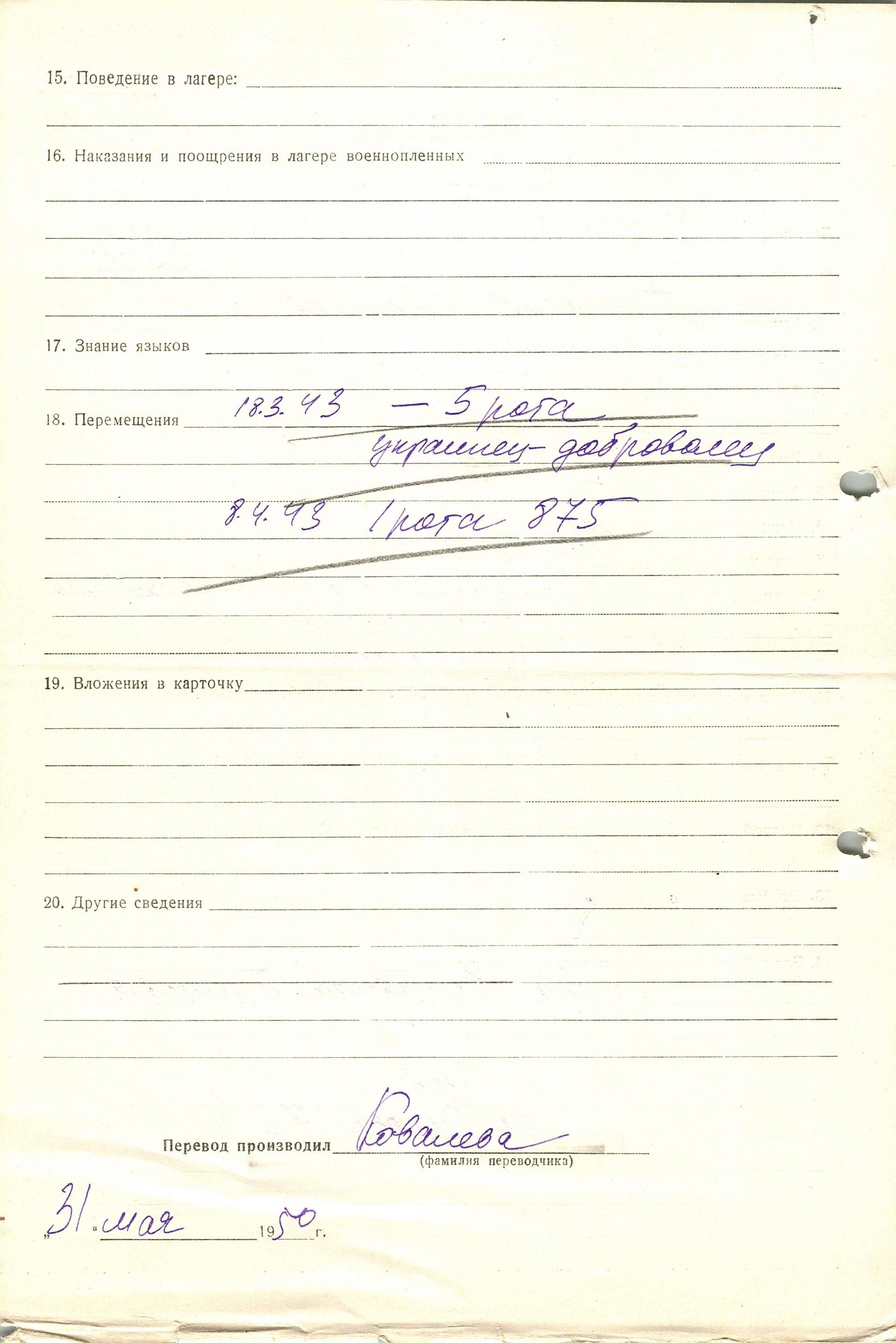 Военнопленные, трофейные карточки. Киевская обл.