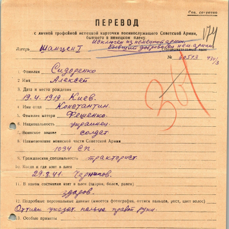 Военнопленные, трофейные карточки. Киевская обл.