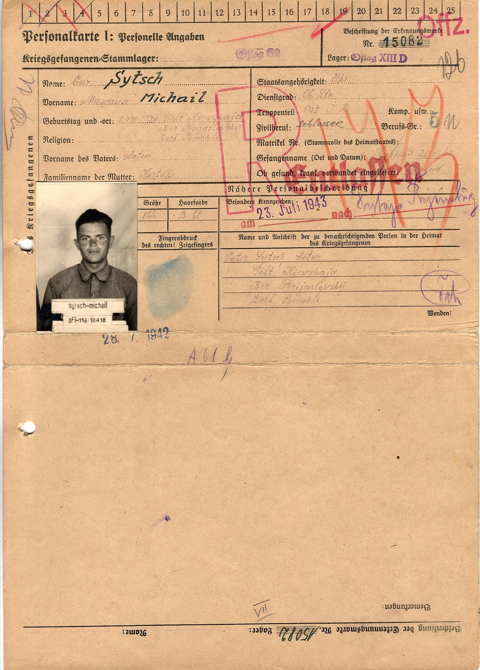 Военнопленные, трофейные карточки. Киевская обл.