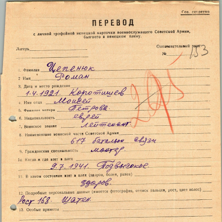 Военнопленные, трофейные карточки. Киевская обл.