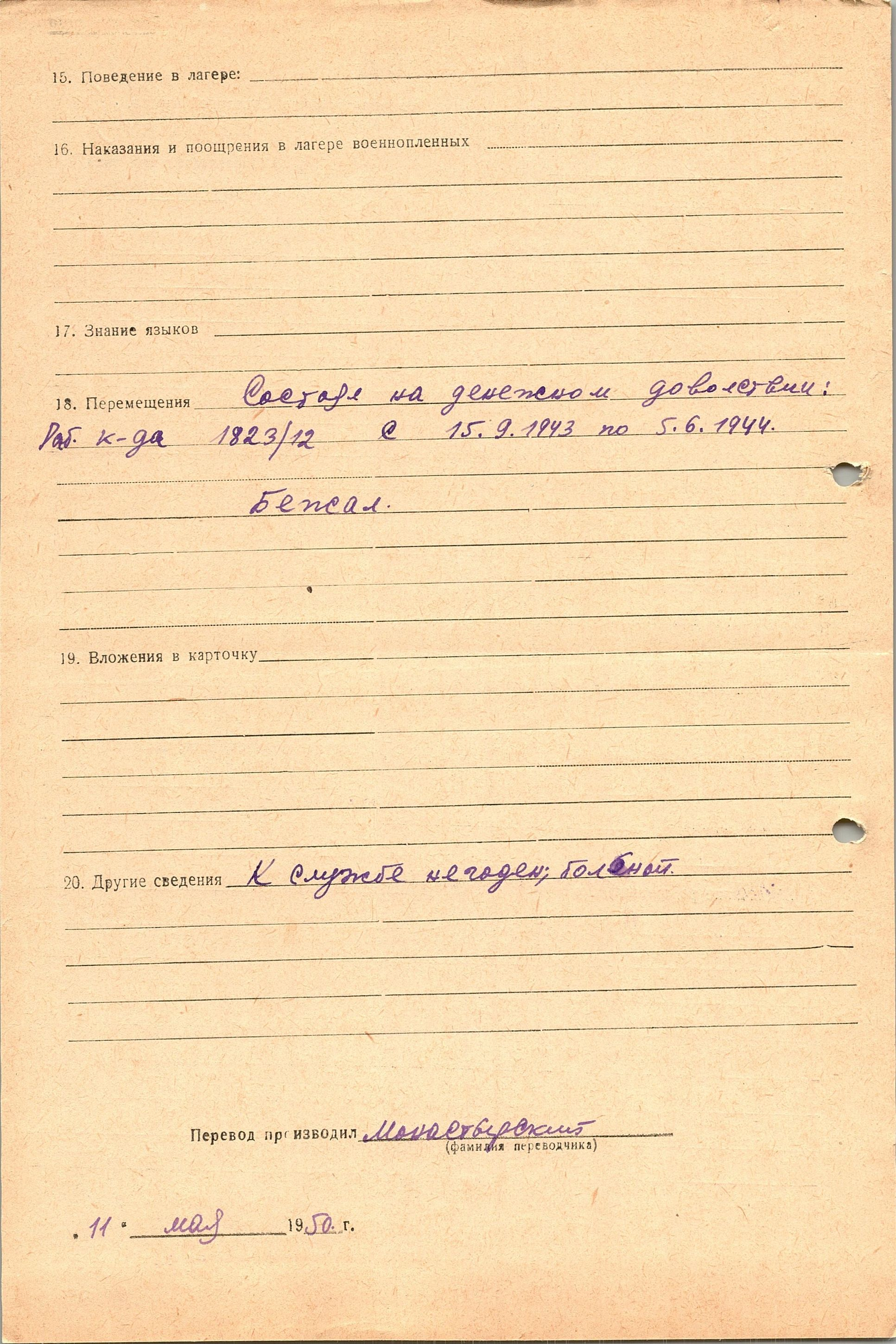 Военнопленные, трофейные карточки. Киевская обл.