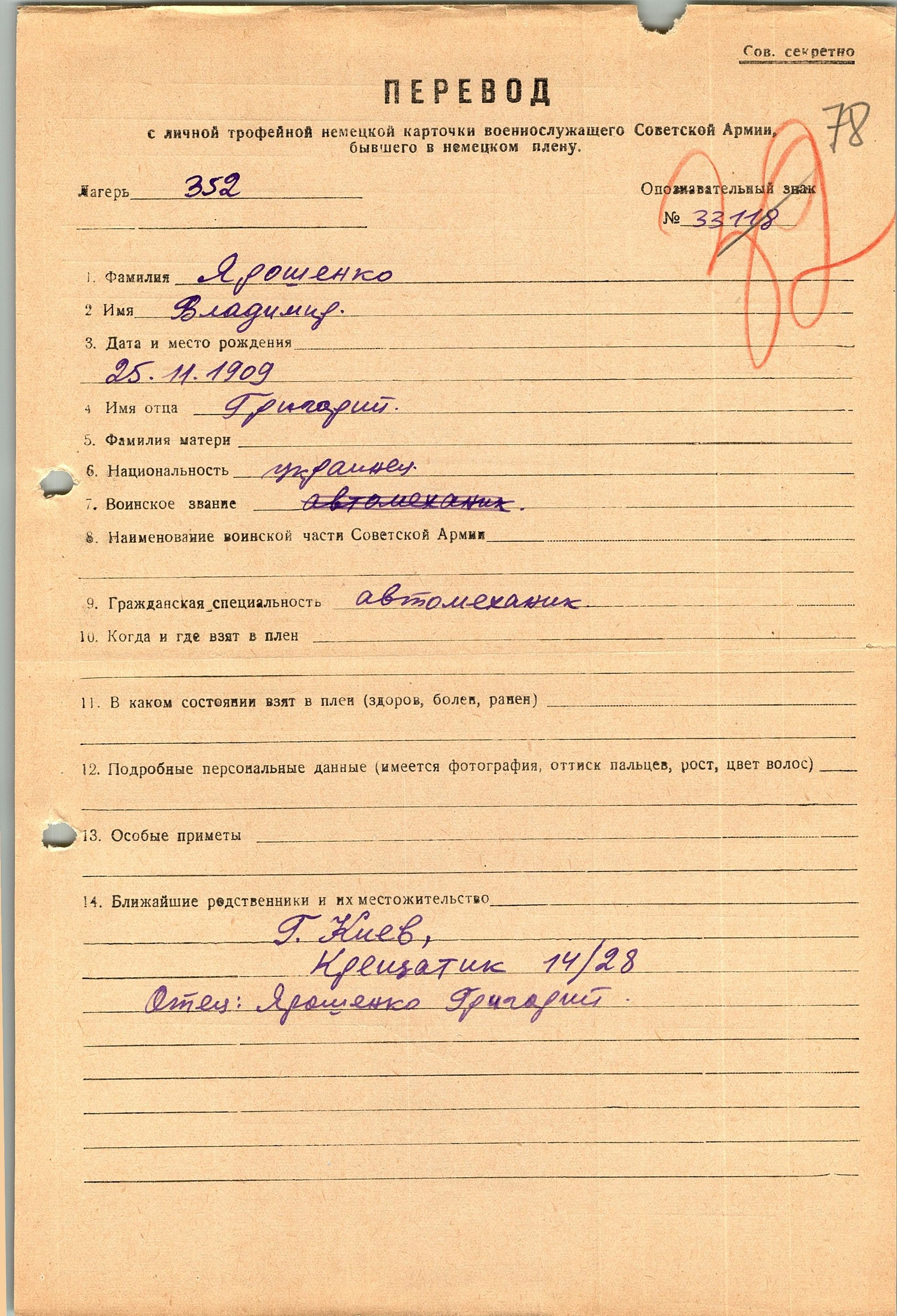 Военнопленные, трофейные карточки. Киевская обл.