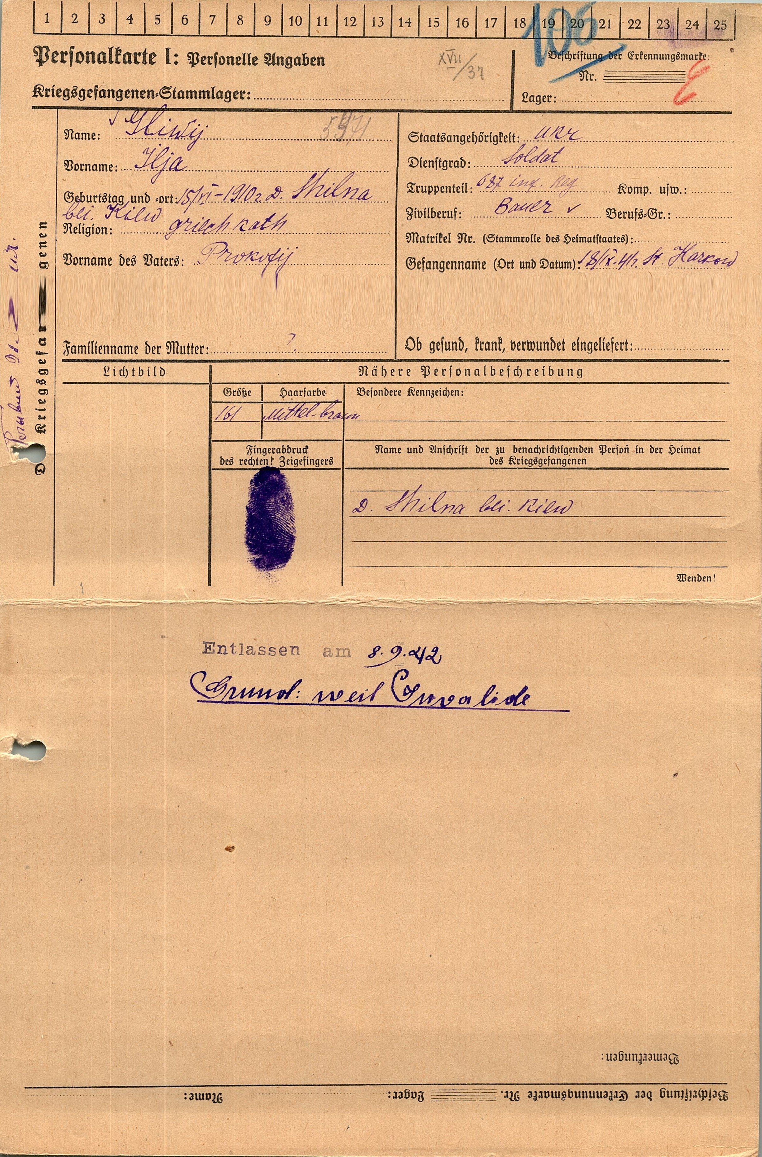 Военнопленные, трофейные карточки. Киевская обл.