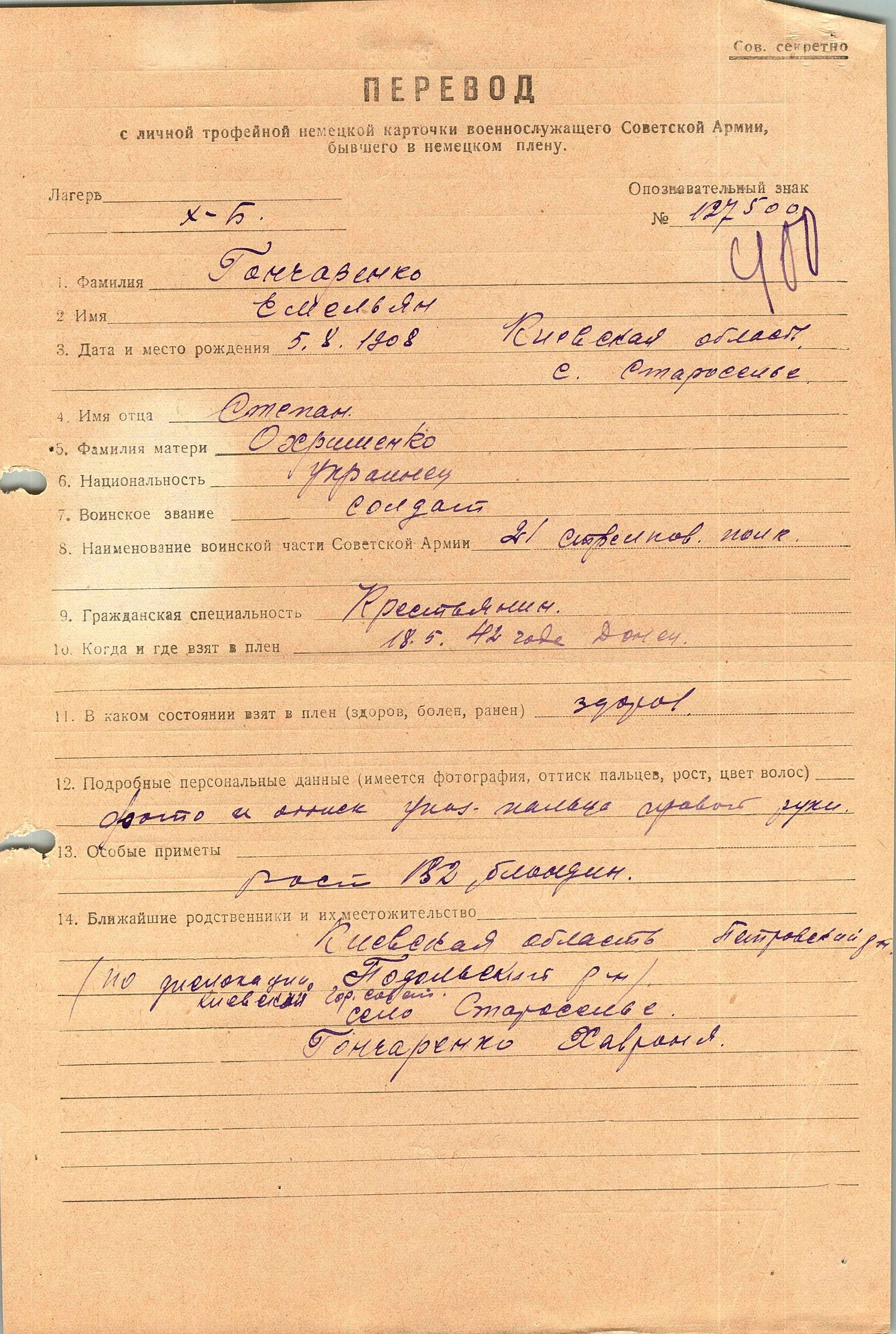 Военнопленные, трофейные карточки. Киевская обл.