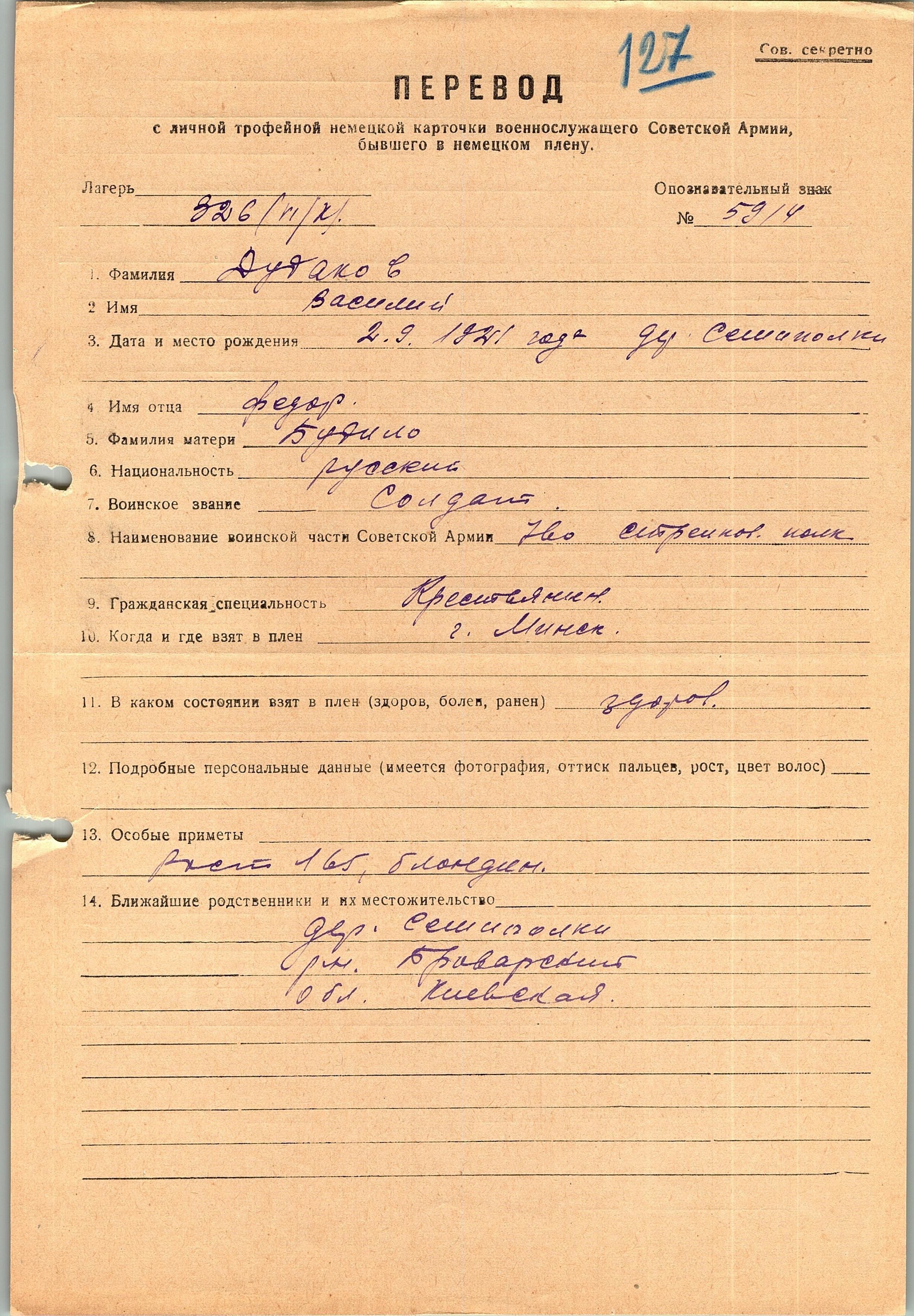 Военнопленные, трофейные карточки. Киевская обл.