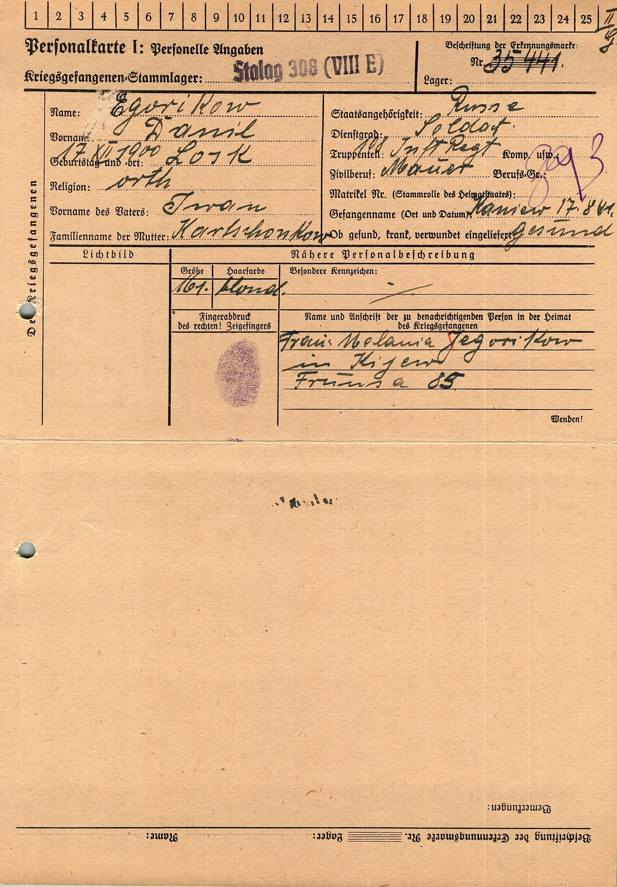 Военнопленные, трофейные карточки. Киевская обл.