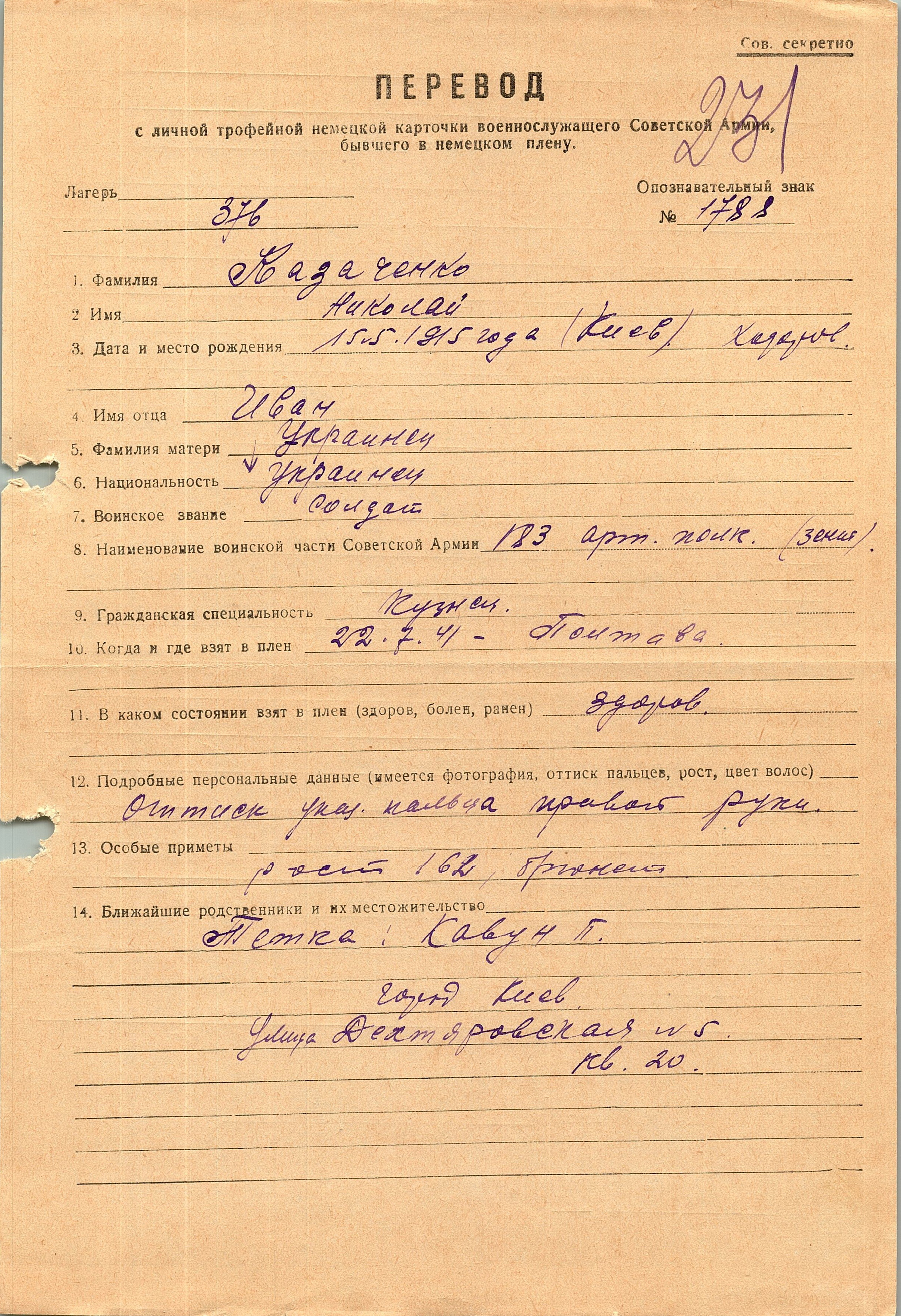 Военнопленные, трофейные карточки. Киевская обл.