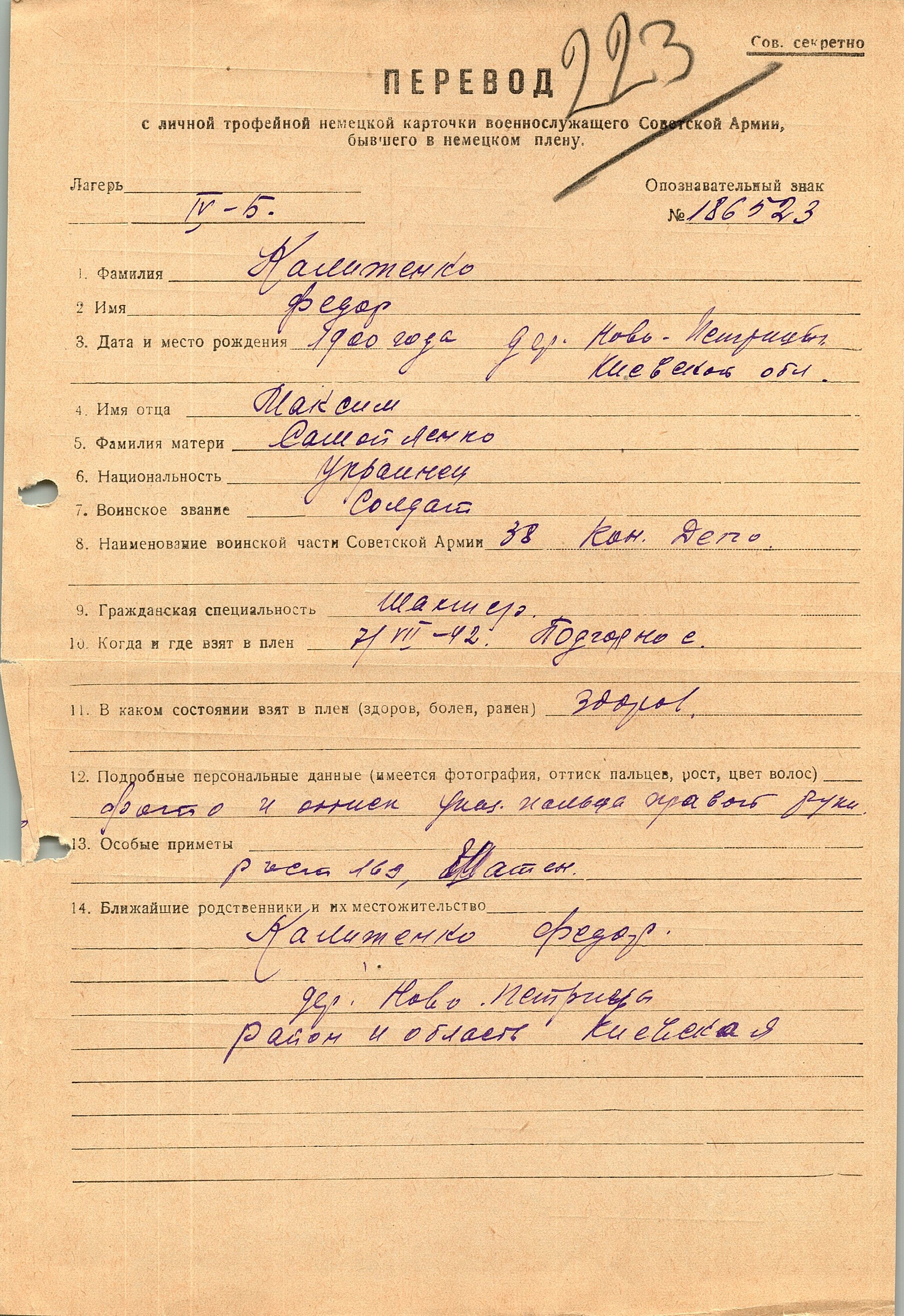 Военнопленные, трофейные карточки. Киевская обл.