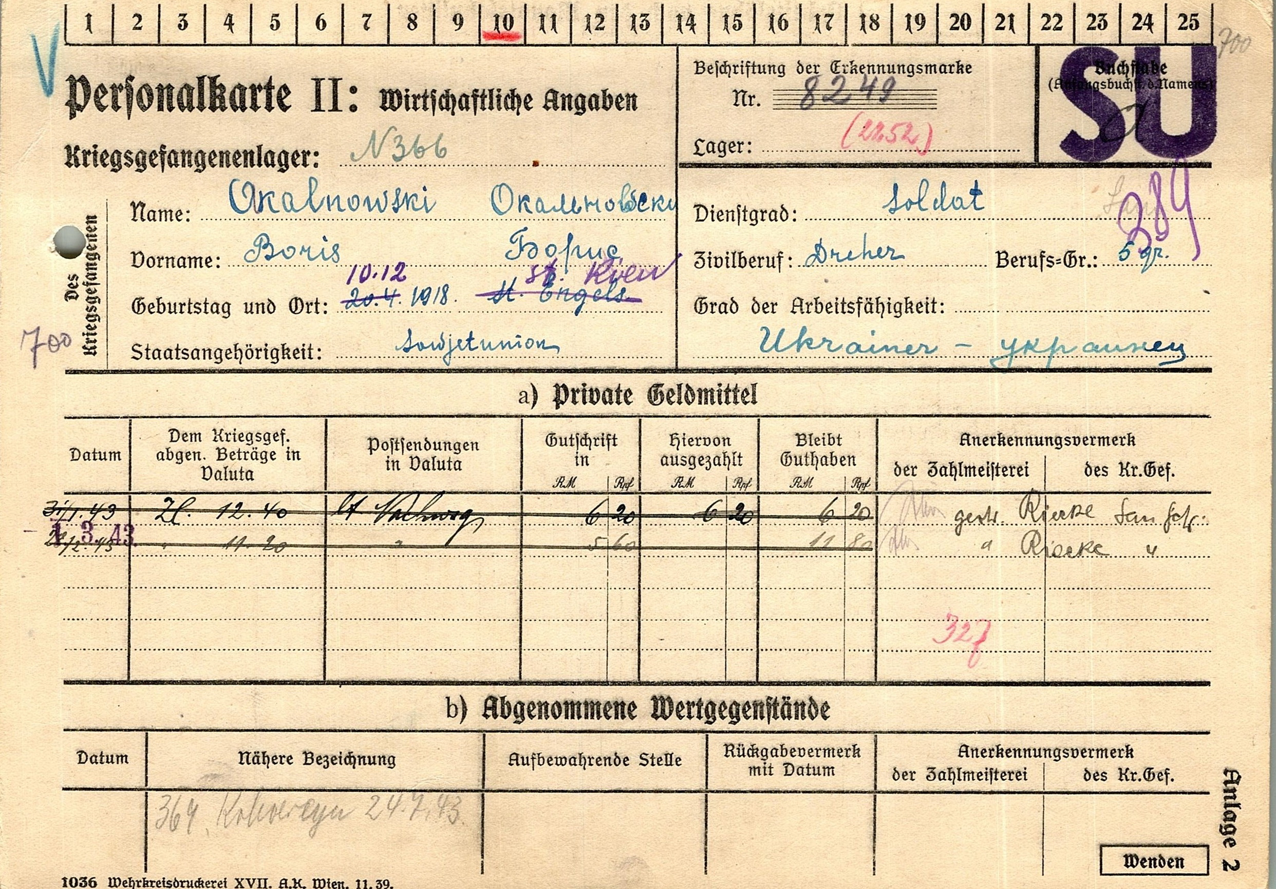 Военнопленные, трофейные карточки. Киевская обл.