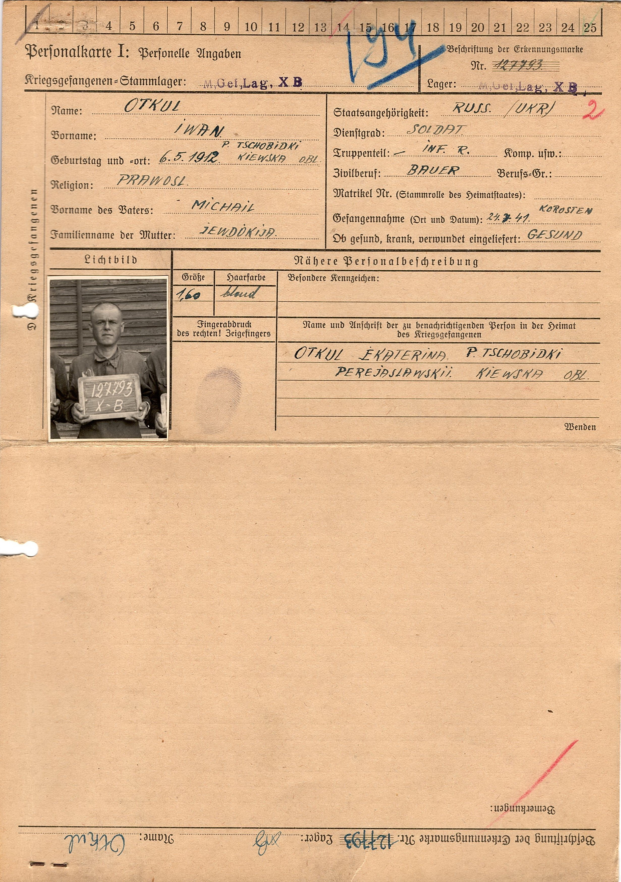 Военнопленные, трофейные карточки. Киевская обл.
