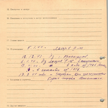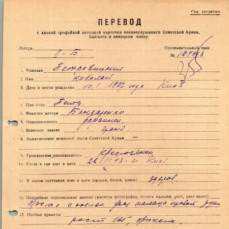 Петровицкий Николай Петрович, 10.01.1927 г. р., Киев. Гражданский. Попал в плен 28.11.1943 г. в Киеве, 17.07.1944 г. – передан как гражданский бирже труда Штеттин.