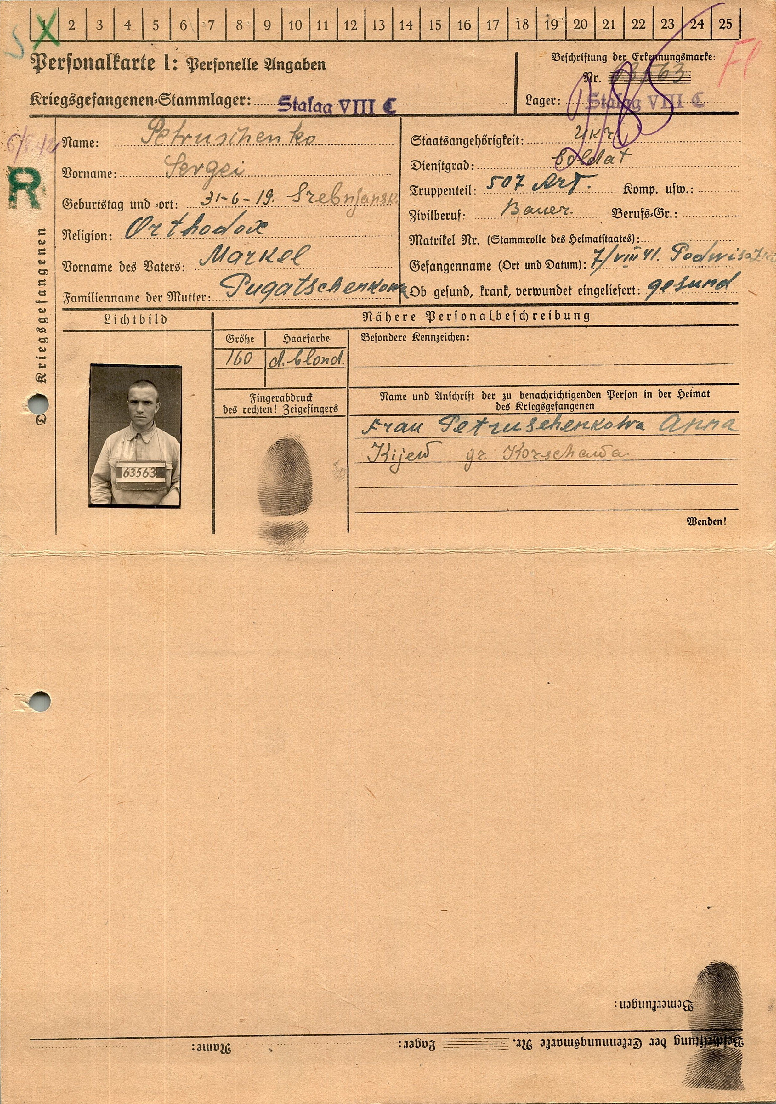 Военнопленные, трофейные карточки. Киевская обл.