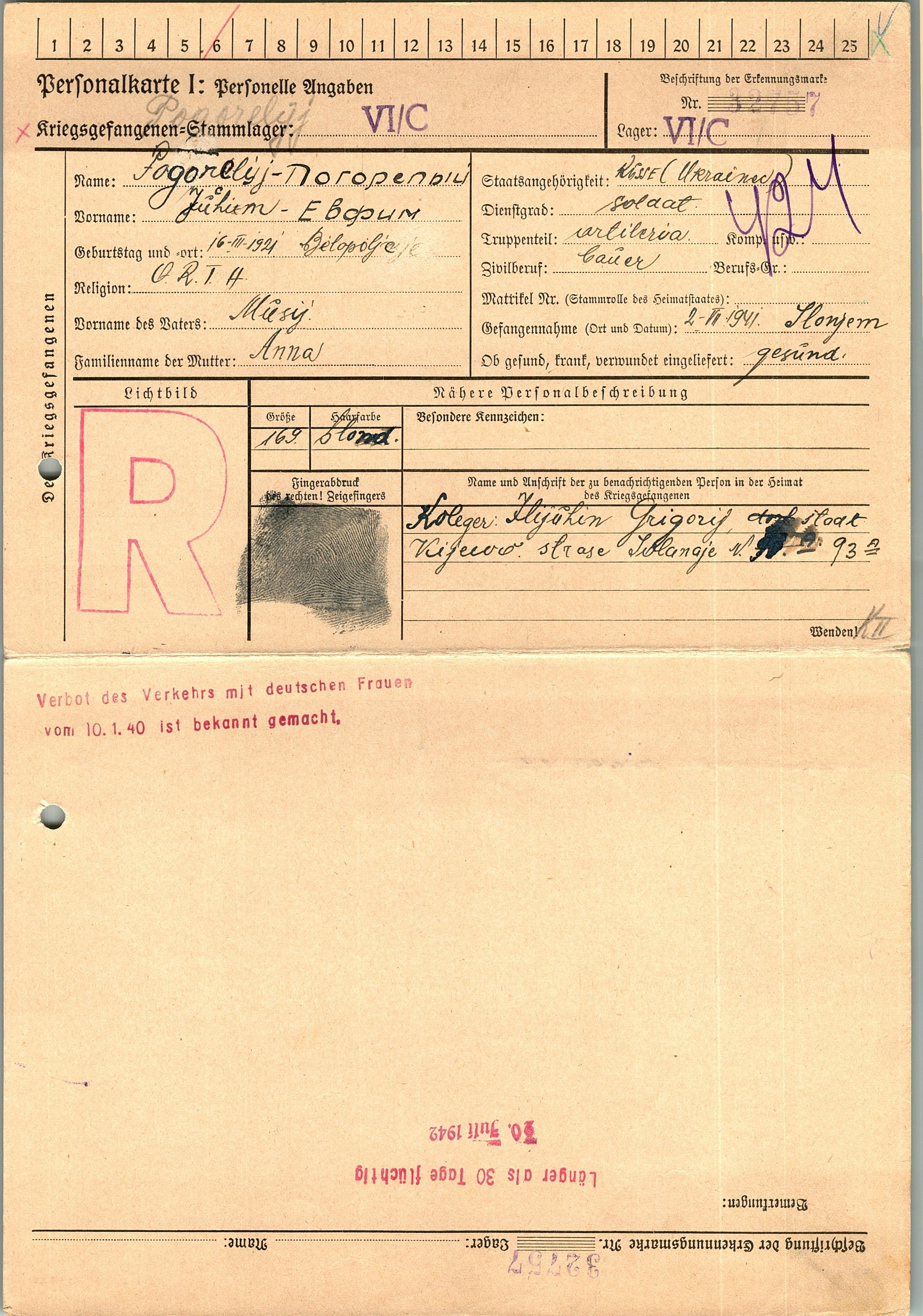 Военнопленные, трофейные карточки. Киевская обл.
