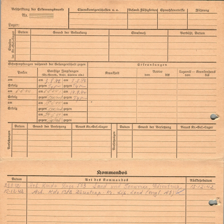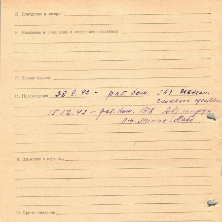 Рекеда Матвей Власович, 1901 г. р., Киевская область. Рядовой, 44 стрелковый полк. Попал в плен 17.05.1942 г. в Крыму, 15.12.1942 г. – отправлен в рабочую команду 1318 Дерентруп, район Липпе-Майнд.