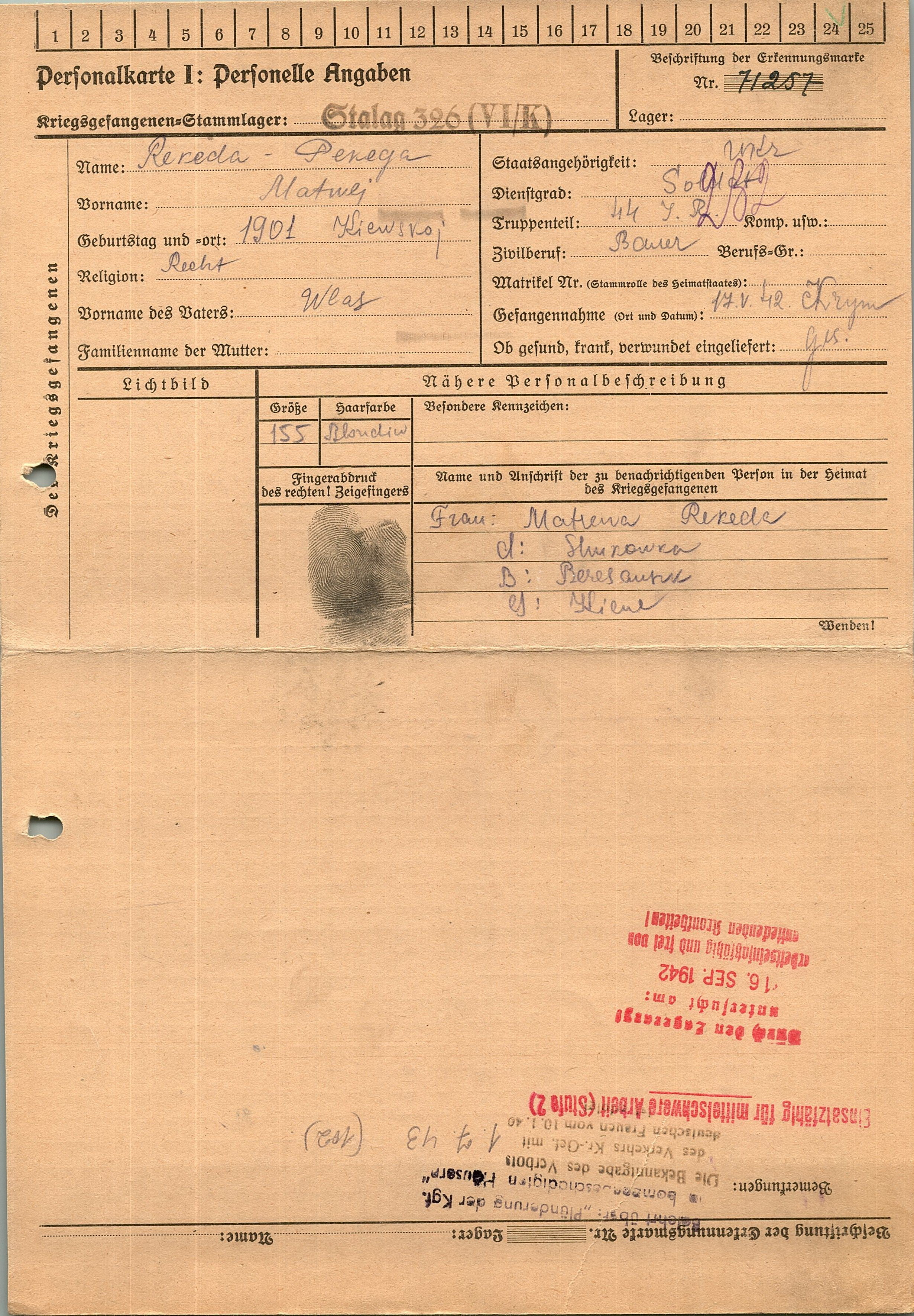 Военнопленные, трофейные карточки. Киевская обл.