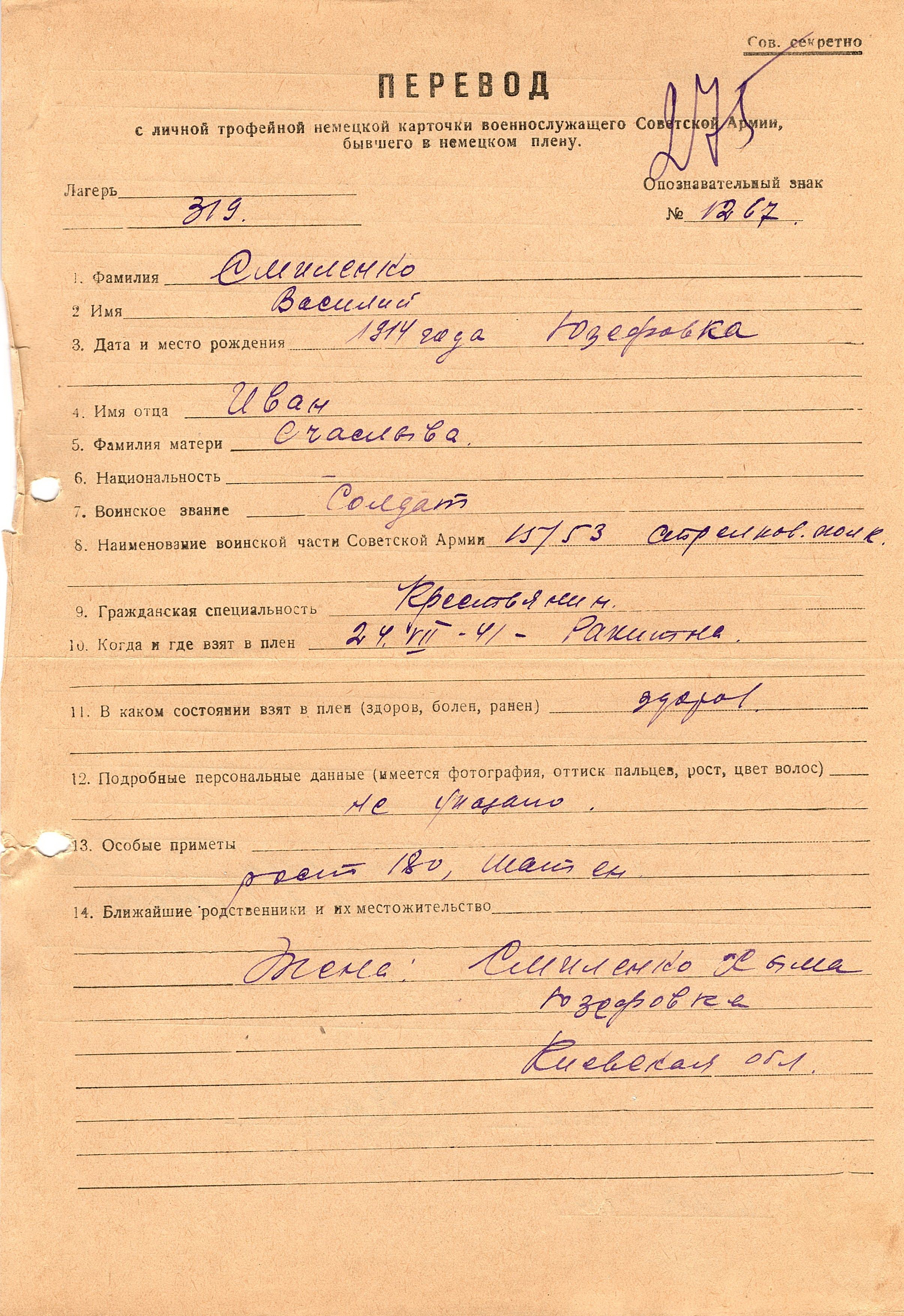 Военнопленные, трофейные карточки. Киевская обл.