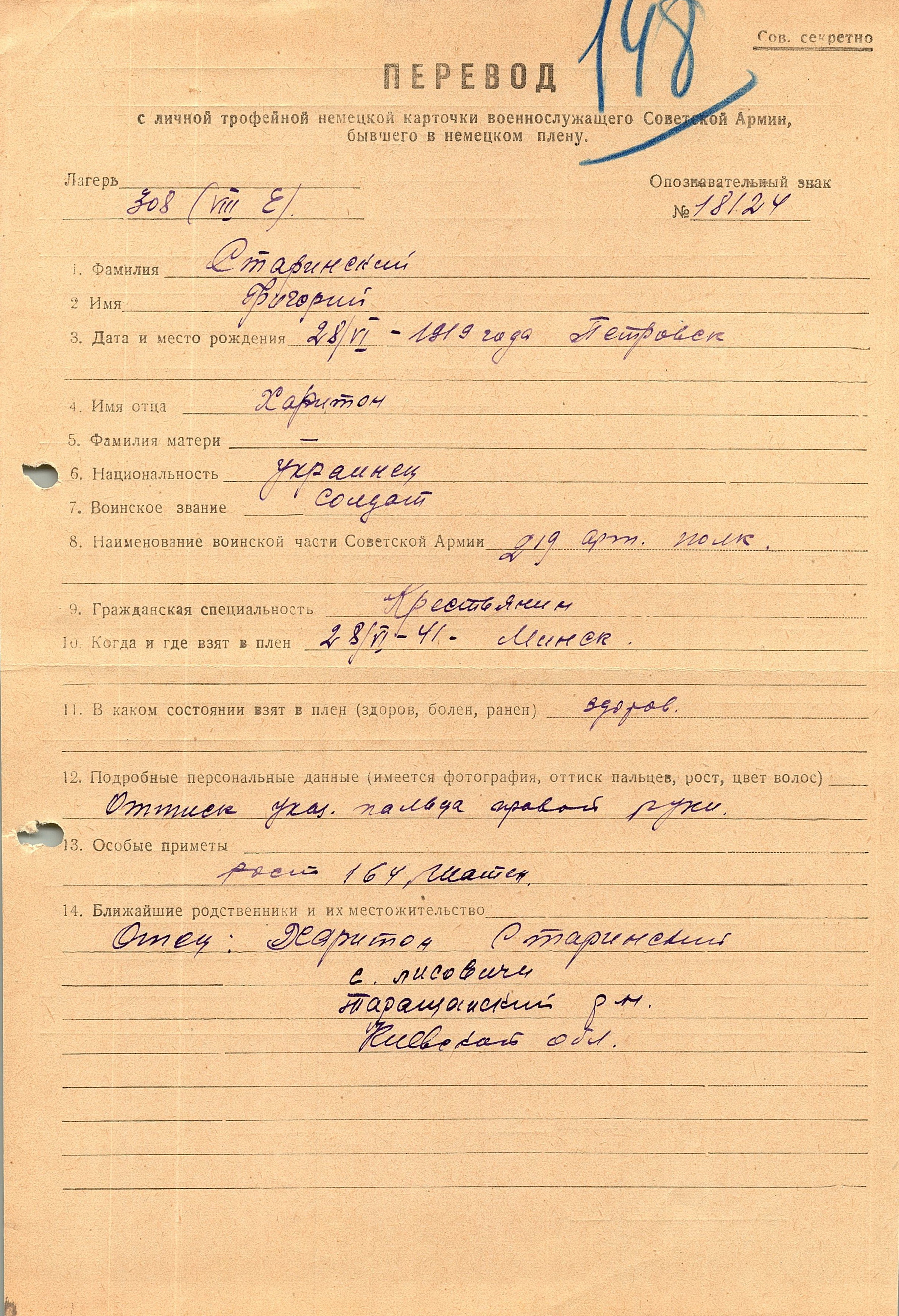 Военнопленные, трофейные карточки. Киевская обл.