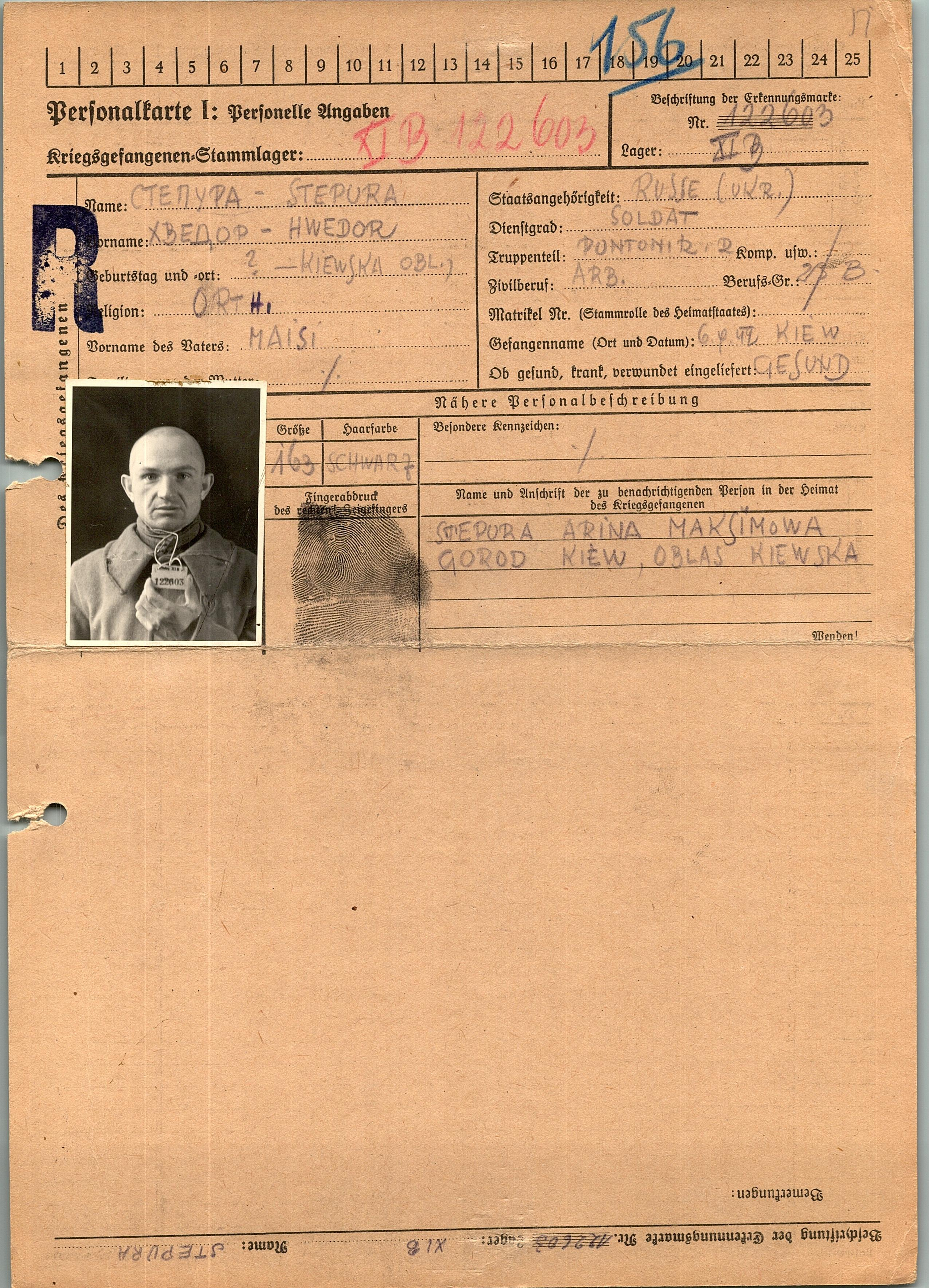 Военнопленные, трофейные карточки. Киевская обл.