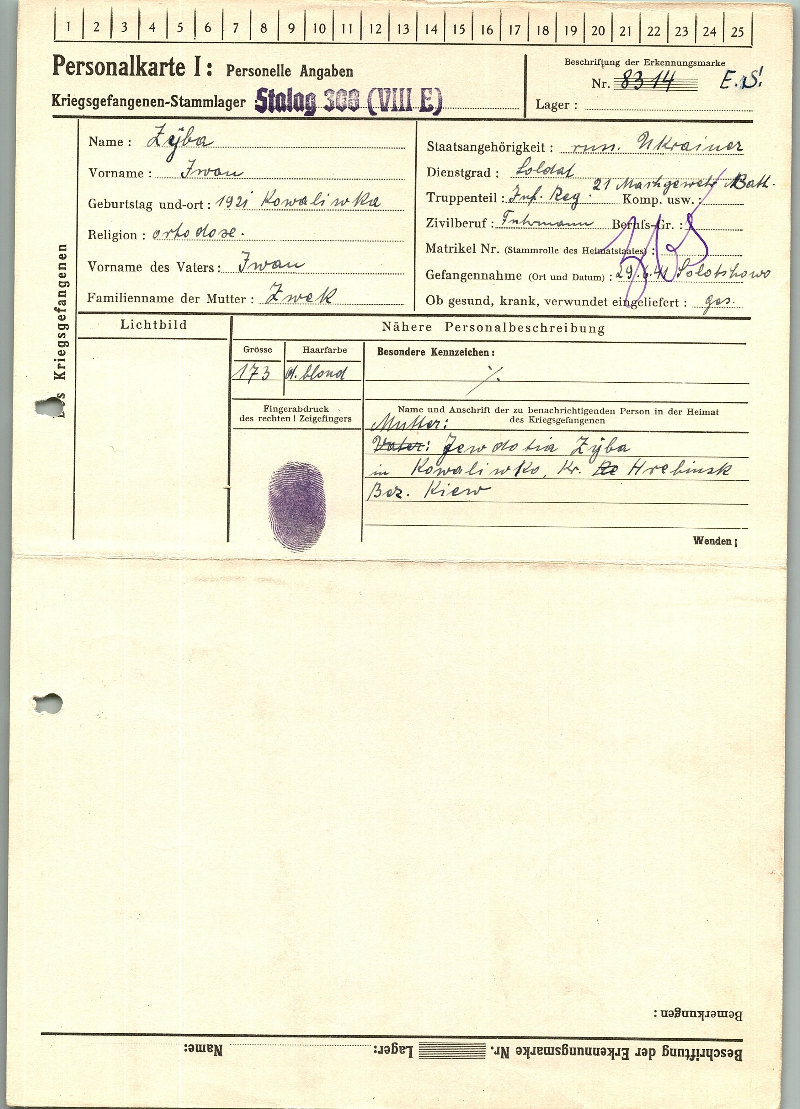 Военнопленные, трофейные карточки. Киевская обл.