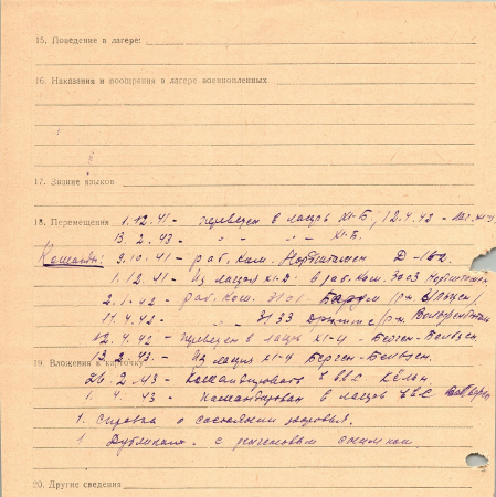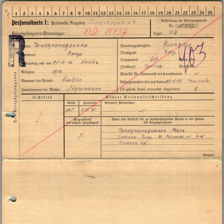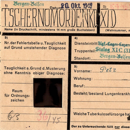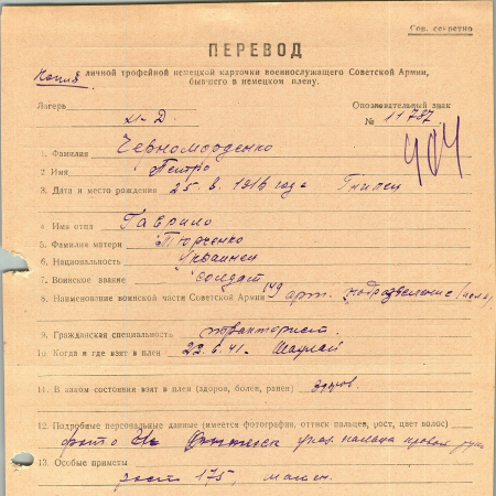 Черноморденко Петр Гаврилович, 25.08.1916 г. р., Гнилец. Рядовой, 149 артиллерийское подразделение (полк). Попал в плен 22.06.1941 г. Шауляй. 01.04.1943г – командирован в лагерь ввс Вольфен.