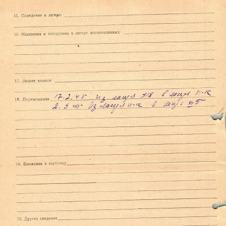 Давыденко Александр Епифанович, 04.10.1905 г. р. Рядовой стрелкового полка. Попал в плен 14.10.1941 г. в г. Сумы. 02.03.1945 – попал в лагерь VI G.