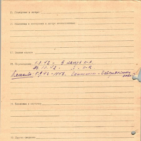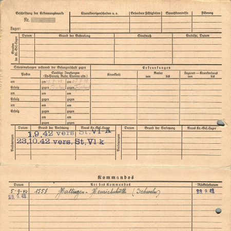 Колисных Иван Петрович, 10.10.1908 г. р., д. Бесидка, Киевская область. Рядовой, мосто-строительная часть. Попал в плен 26.05.1942 г. в Харькове. 05.09.1942 г. – отправлен в команду 1558, Гаттинген- завод Генриксхютте.