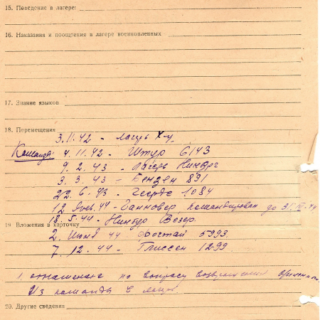 Соколов Леонтий Андреевич, 1915 г. р. Рядовой, 51 дивизия. Попал в плен 17.05.1942 г. в г. Славинск. 07.12.1944 г. – отправлен в Глиссен 1299.