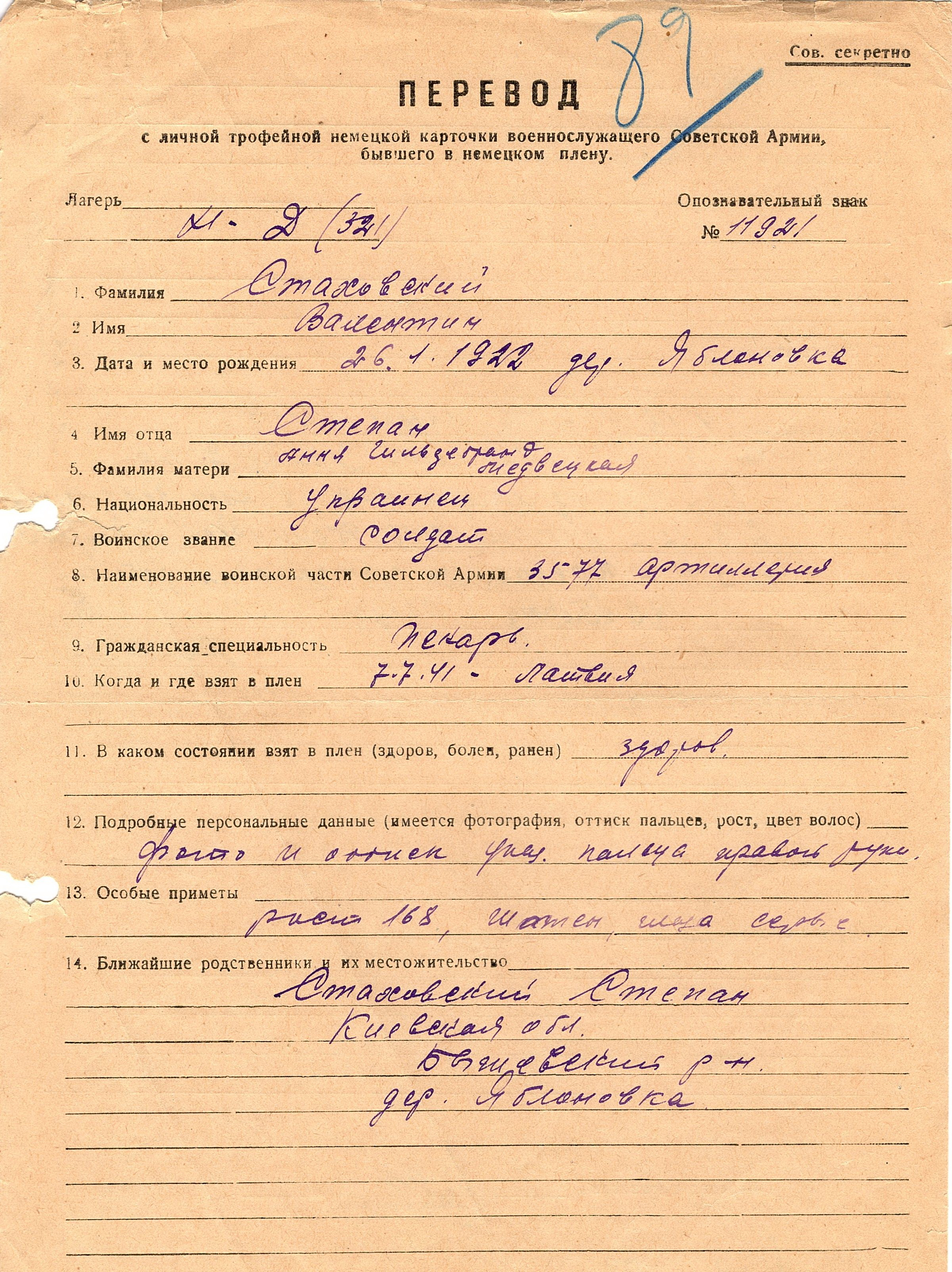 Военнопленные, трофейные карточки. Киевская обл.