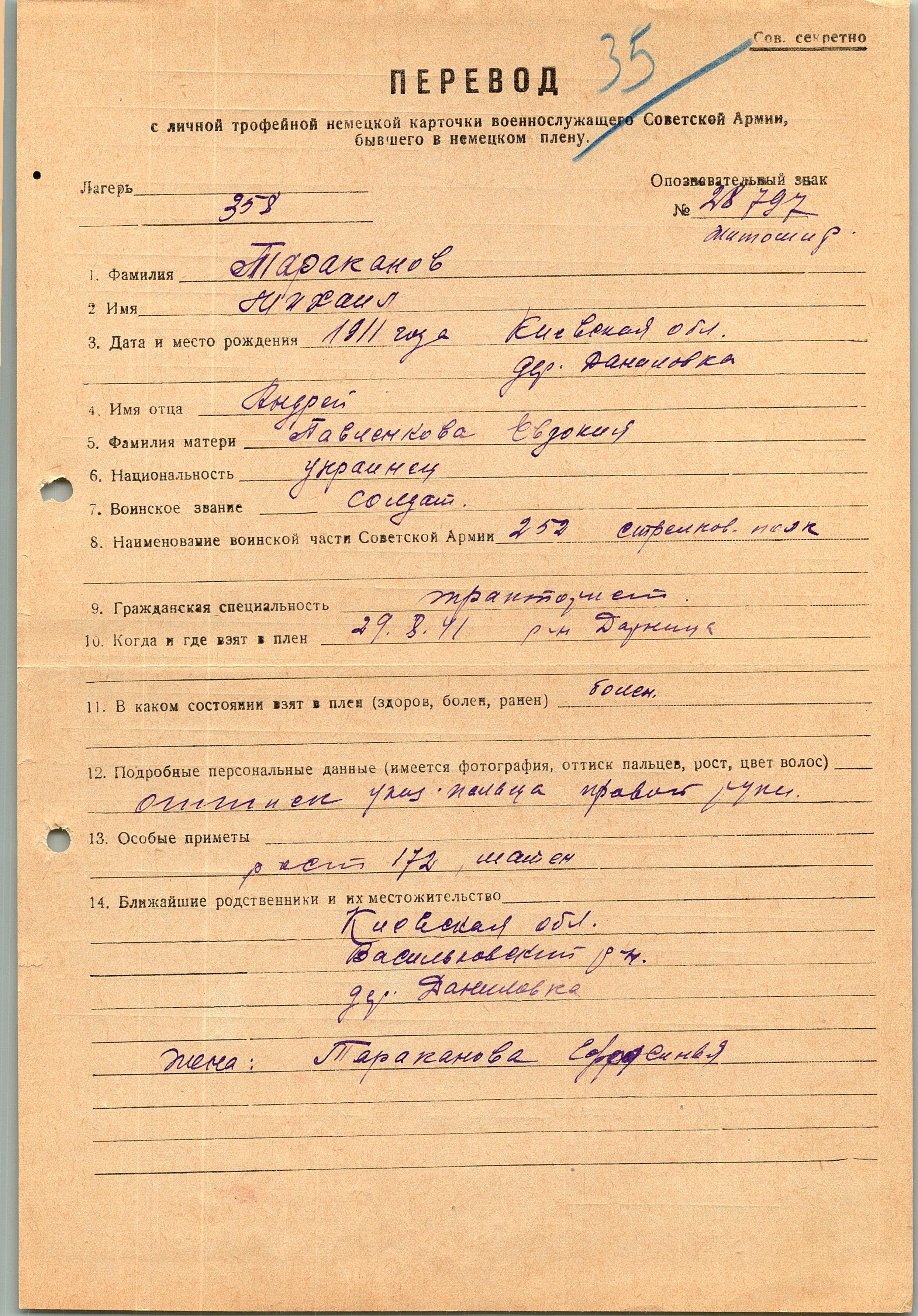Военнопленные, трофейные карточки. Киевская обл.