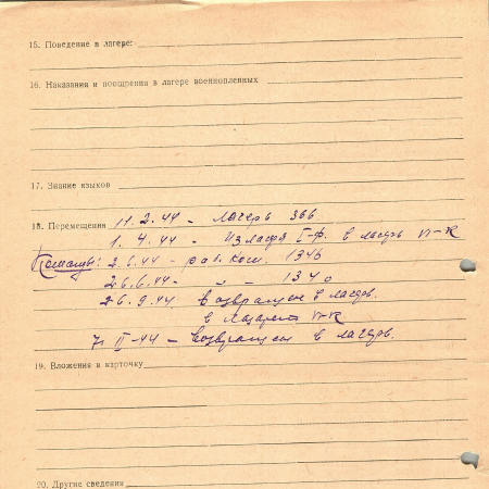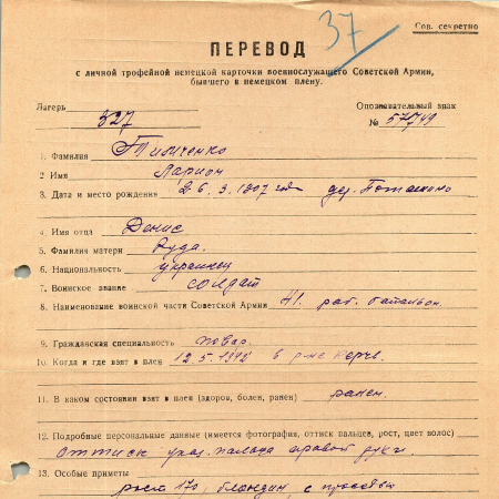 Тимченко Ларион Денисович, 26.03.1907 г. р., дер. Поташино. Рядовой, 41 рабочий батальон. Попал в плен 12.05.1942 в р-не Керчи. Был ранен. 07.02.1944 г. – в лагере VI-R.
