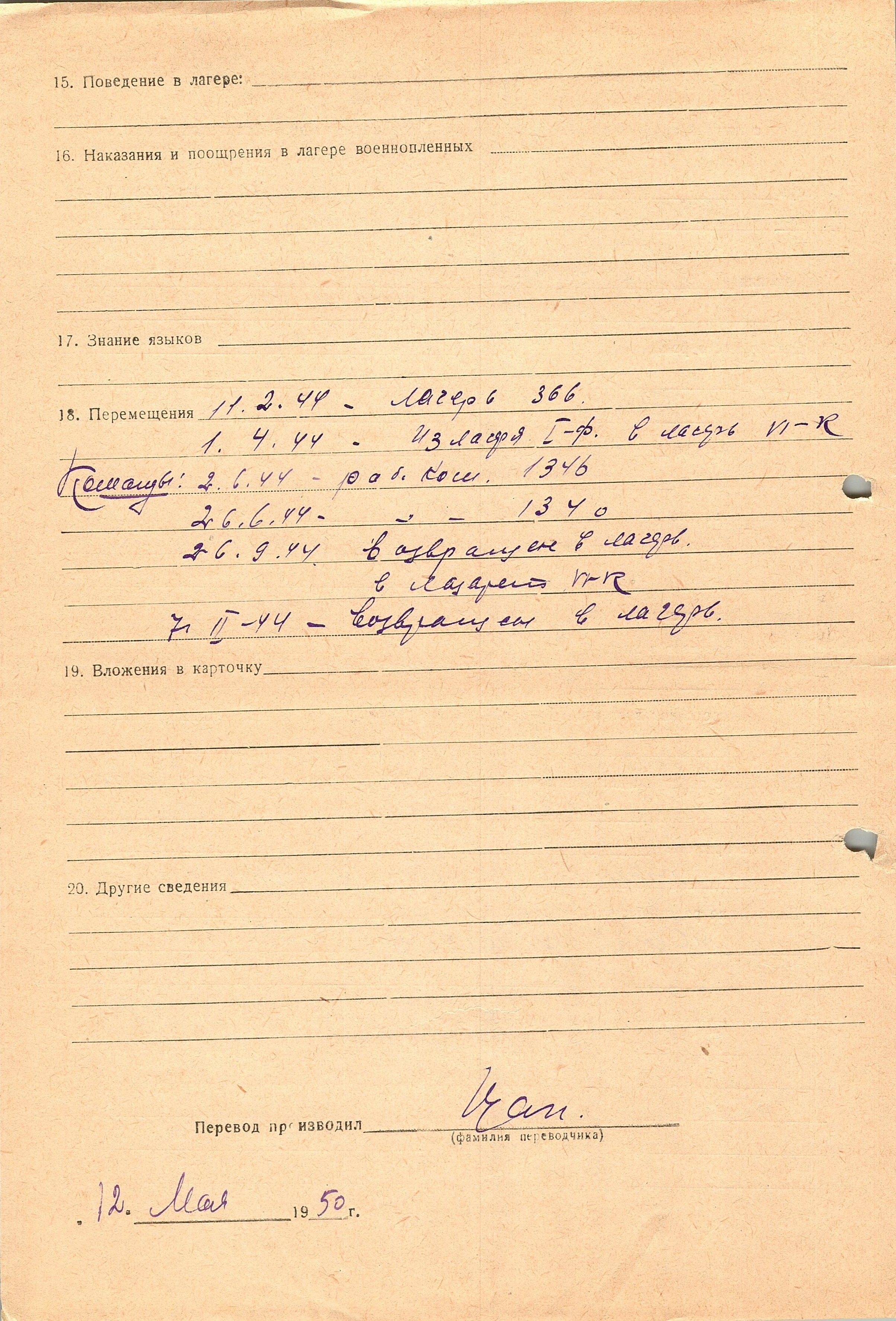Военнопленные, трофейные карточки. Киевская обл.