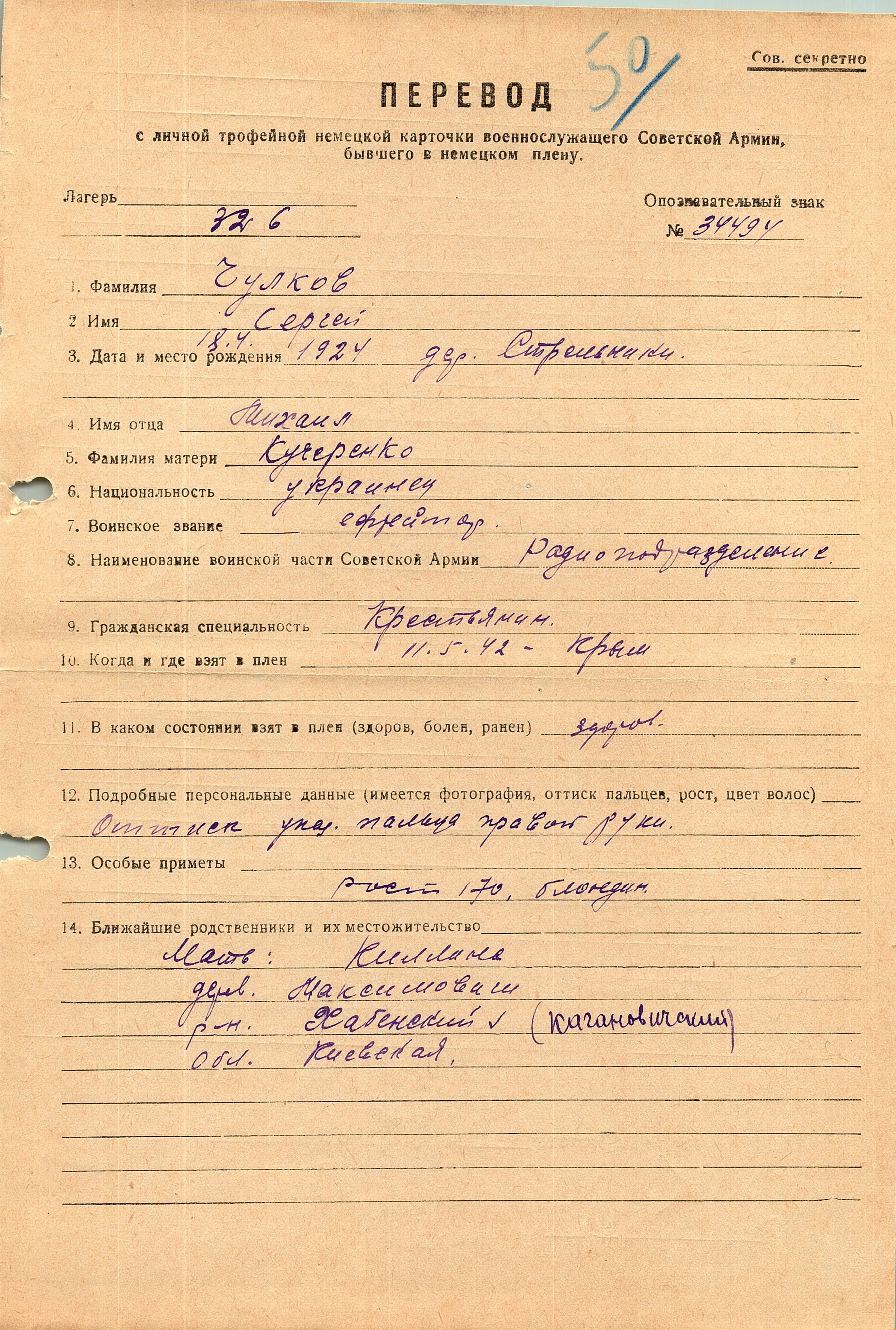 Военнопленные, трофейные карточки. Киевская обл.