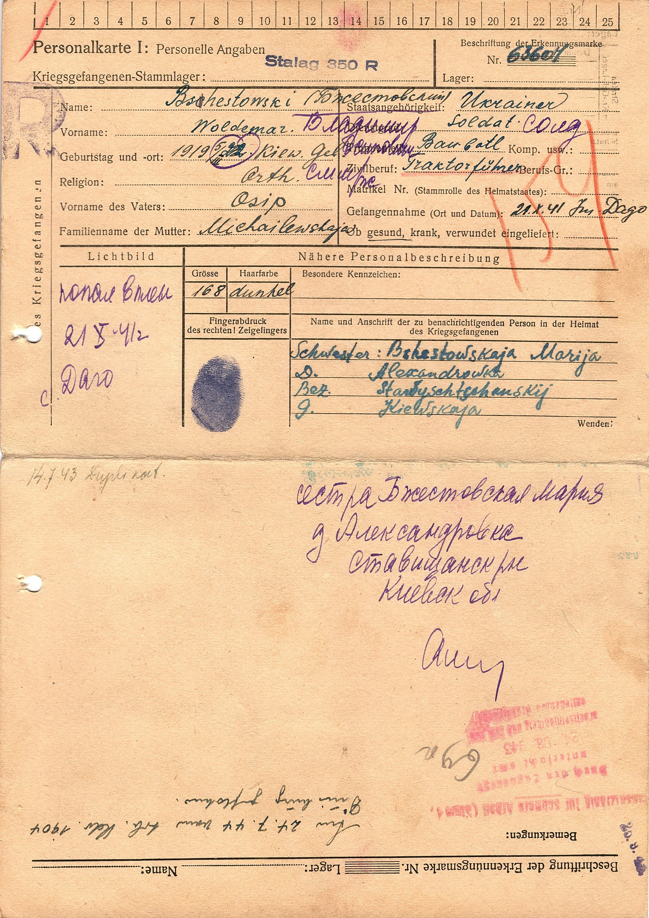 Военнопленные, трофейные карточки. Киевская обл.