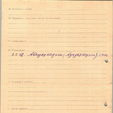 Давиденко Михаил Арсентиевич, 11.07.1921 г. р. Киев, Рядовой, 99 стрелковый полк. Попал в плен 27.09.1941 г. 07.05.1942 г. – Аугустхаузен 5310.