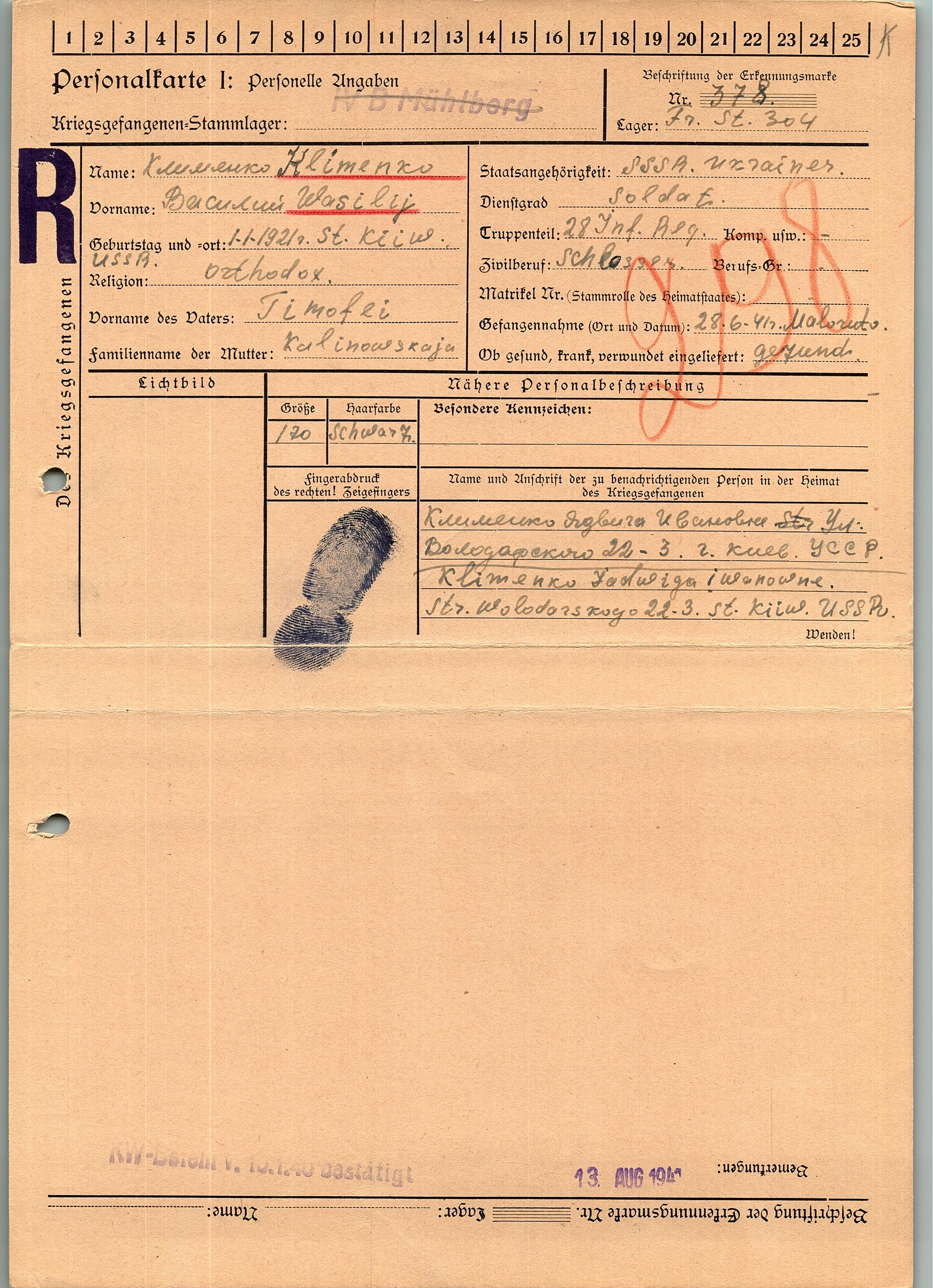 Военнопленные, трофейные карточки. Киевская обл.