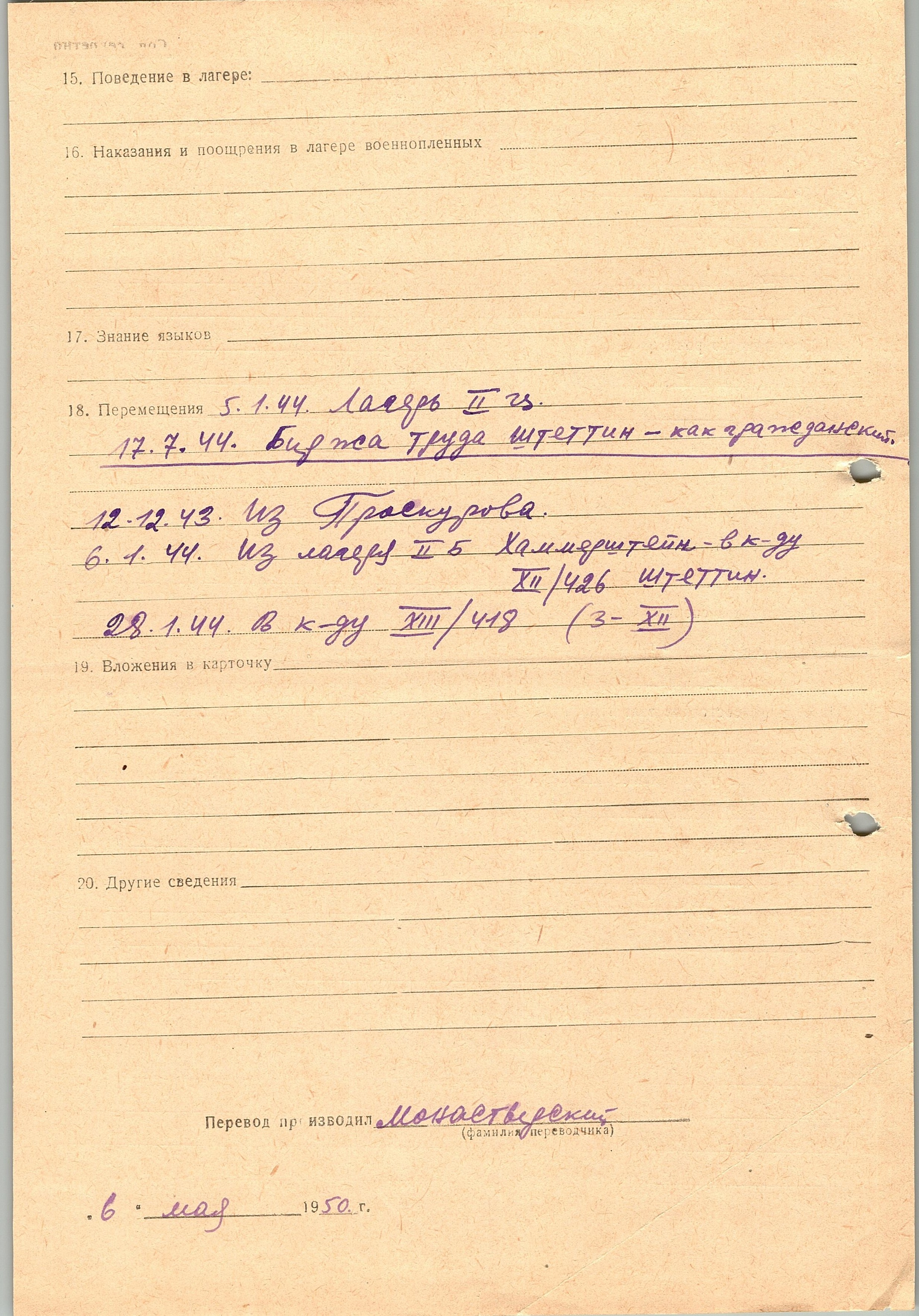 Военнопленные, трофейные карточки. Киевская обл.