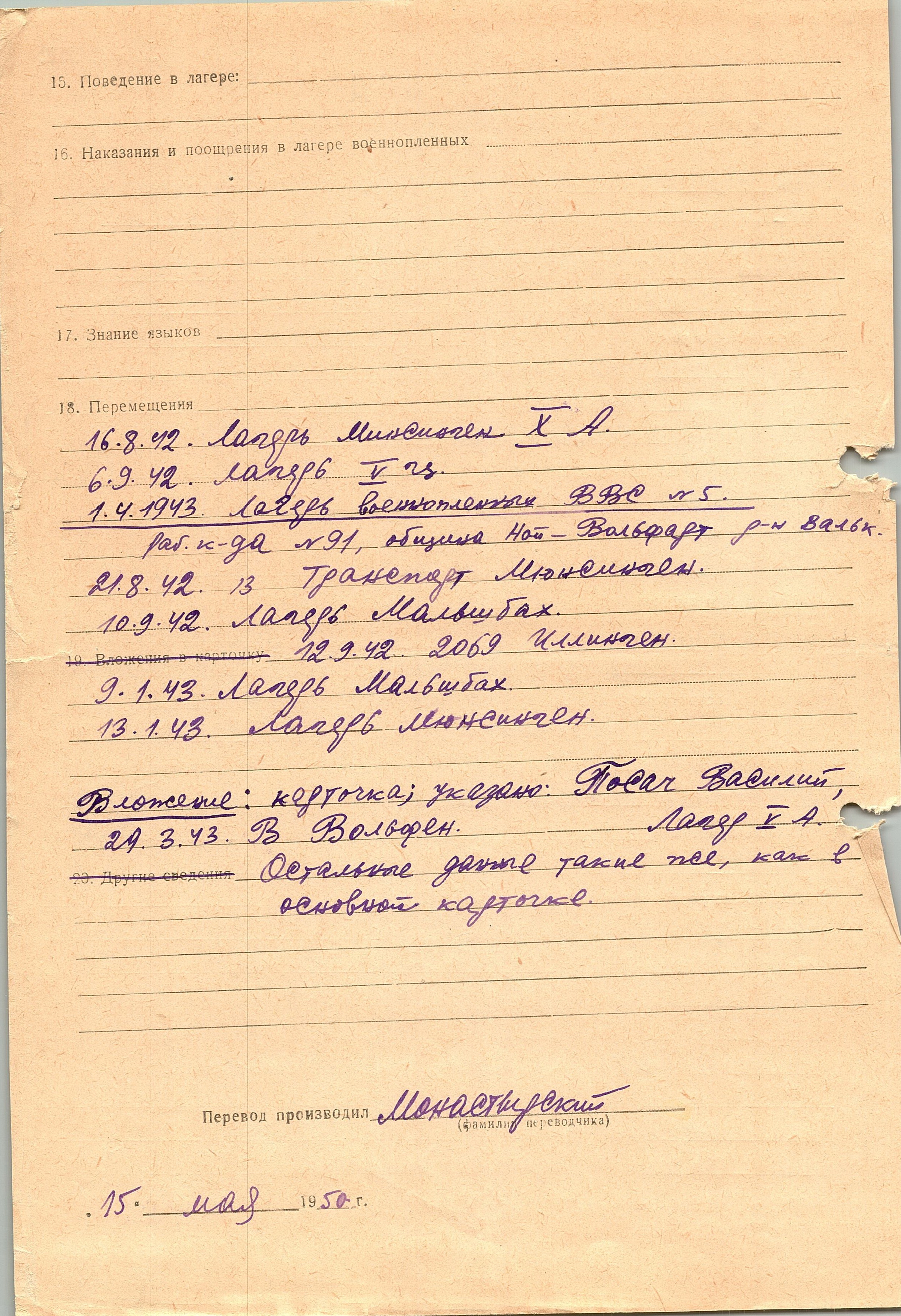 Военнопленные, трофейные карточки. Киевская обл.