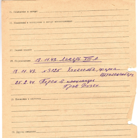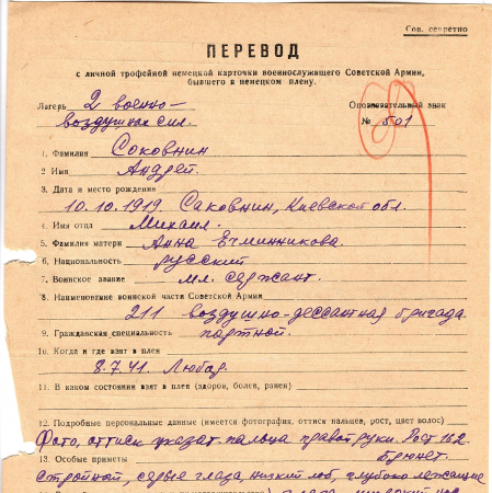 Соковнин Андрей Михайлович, 10.10.1919 г. р., Сакович, Киевская область. Младший сержант, 211 воздушно-десантная бригада. Попал в плен 08.07.1941 г. в пгт Любар. 25.02.1944 г. – концлагерь Грос Розен.
