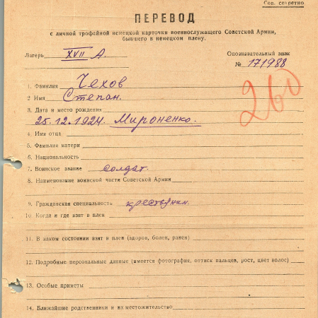 , 25.12.1924 г. р., Мироновка. Рядовой. Попал в плен в лагерь XVII А.