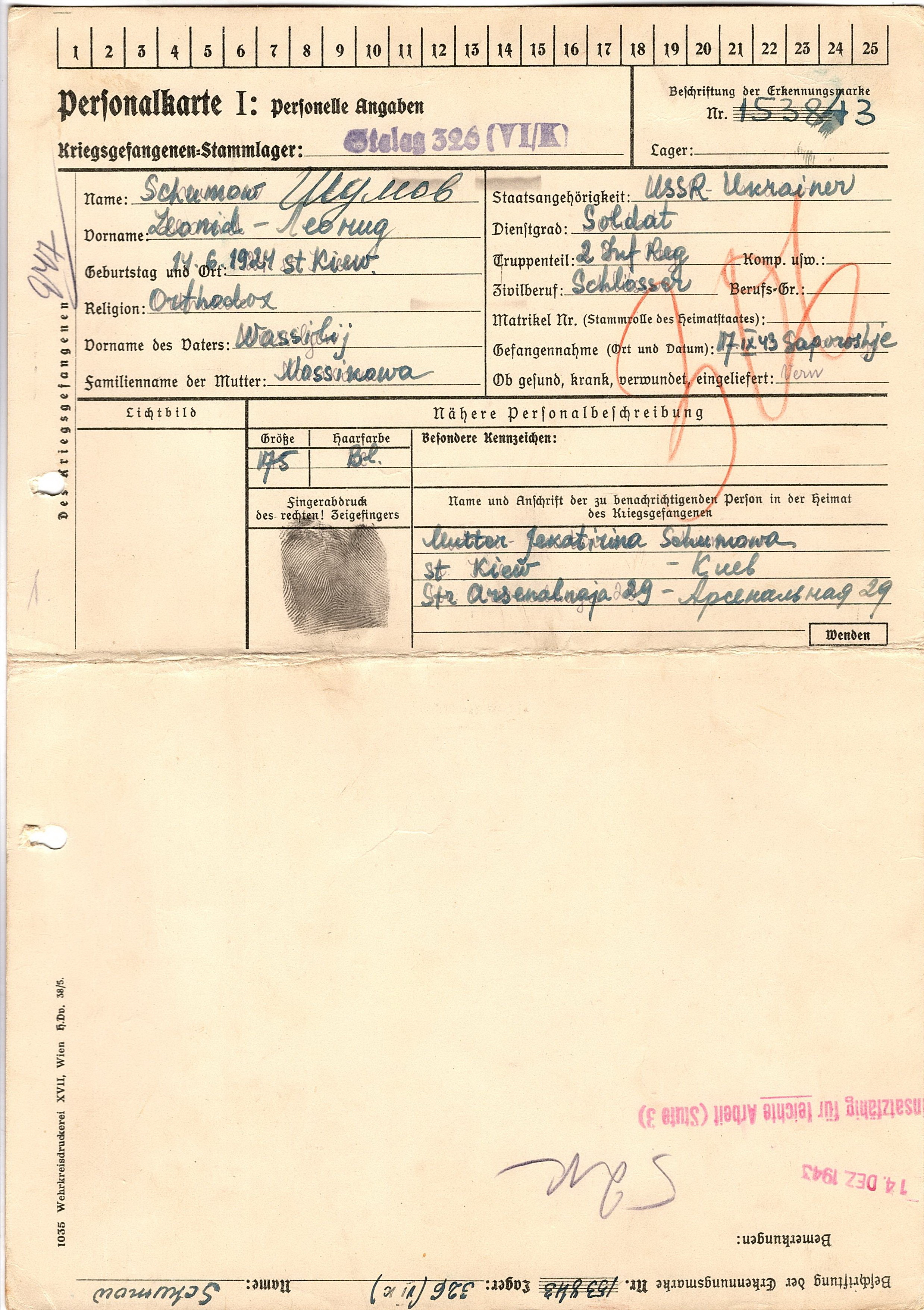 Военнопленные, трофейные карточки. Киевская обл.