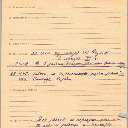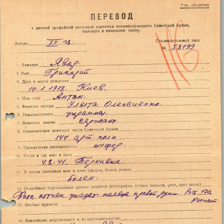 Явор Григорий Антонович, 10.01.1918 г. р., Киев. Сержант, 144 артиллерийский полк. Попал в плен 04.08.1941 г. в с. Тернивка. В 1943 г. был направлен в команду Нарвик.