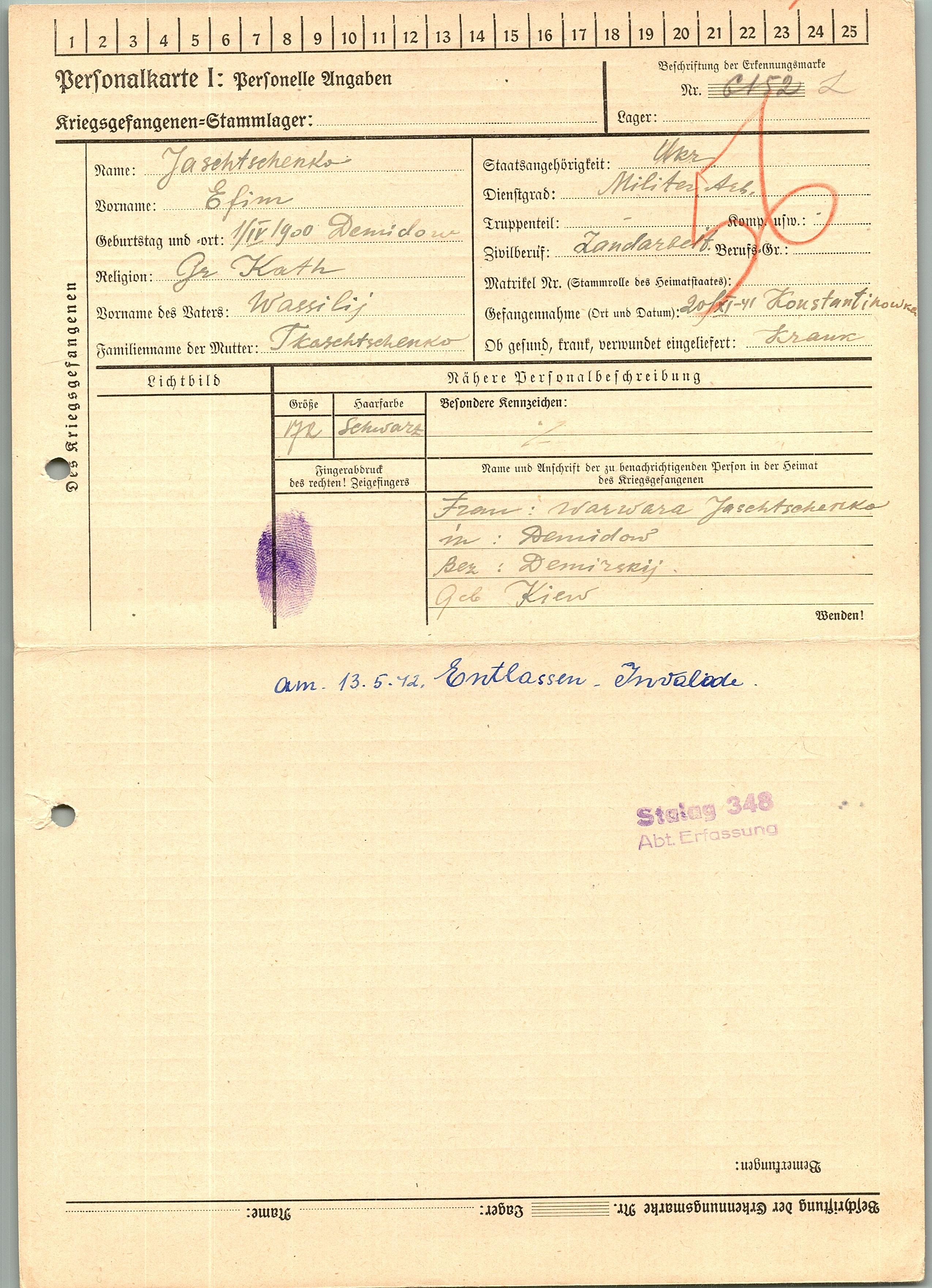 Военнопленные, трофейные карточки. Киевская обл.