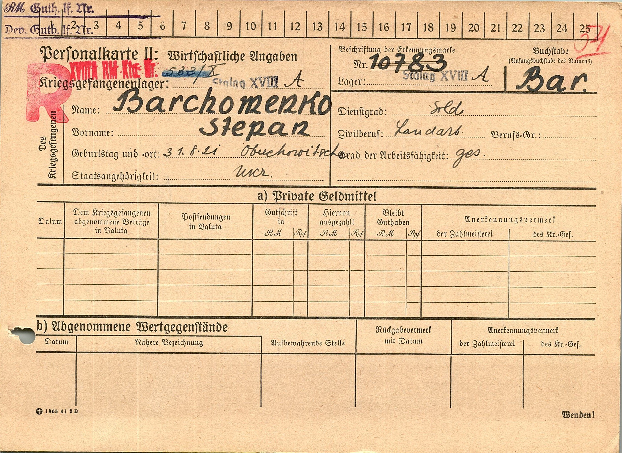 Военнопленные, трофейные карточки. Киевская обл.