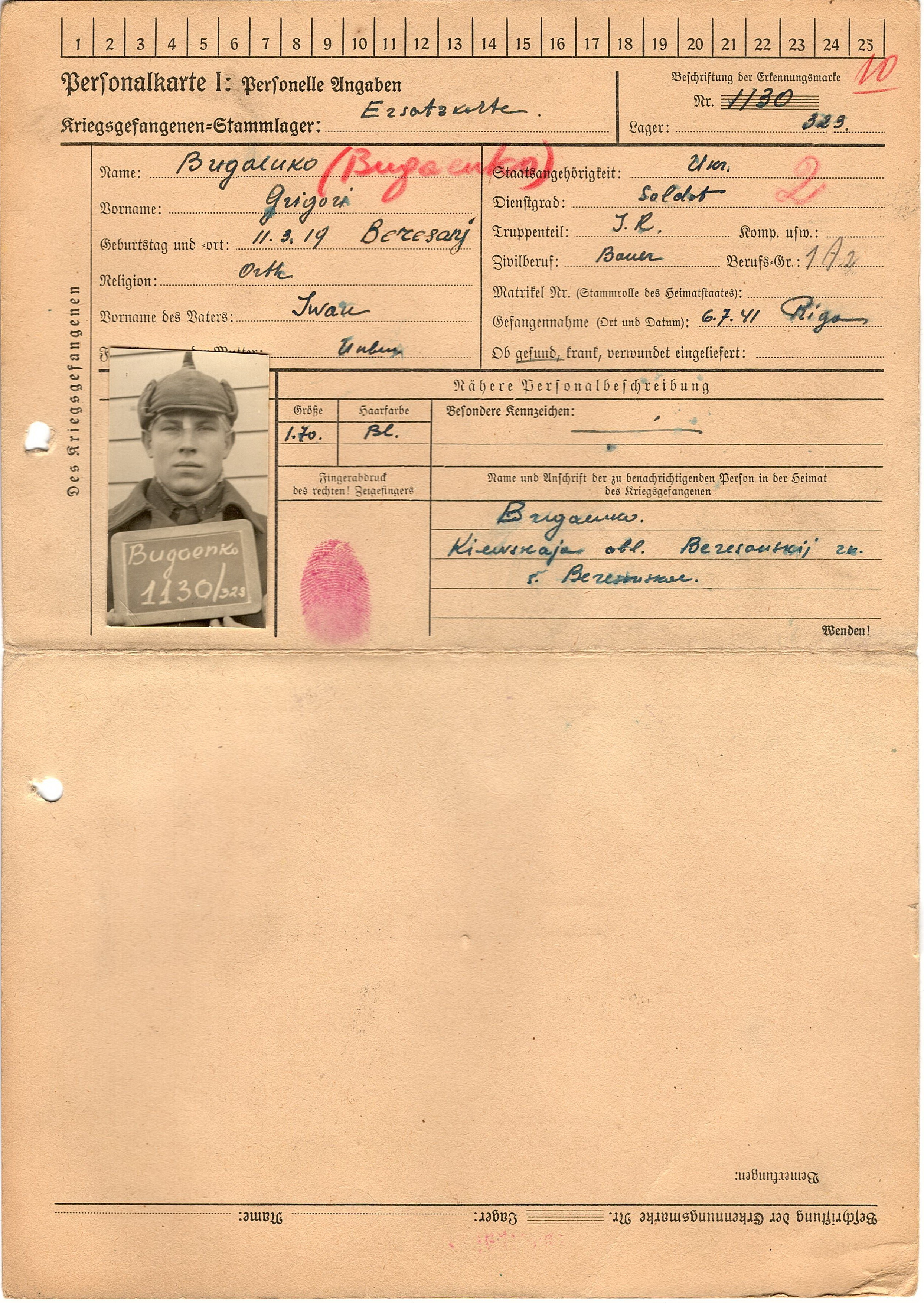 Военнопленные, трофейные карточки. Киевская обл.